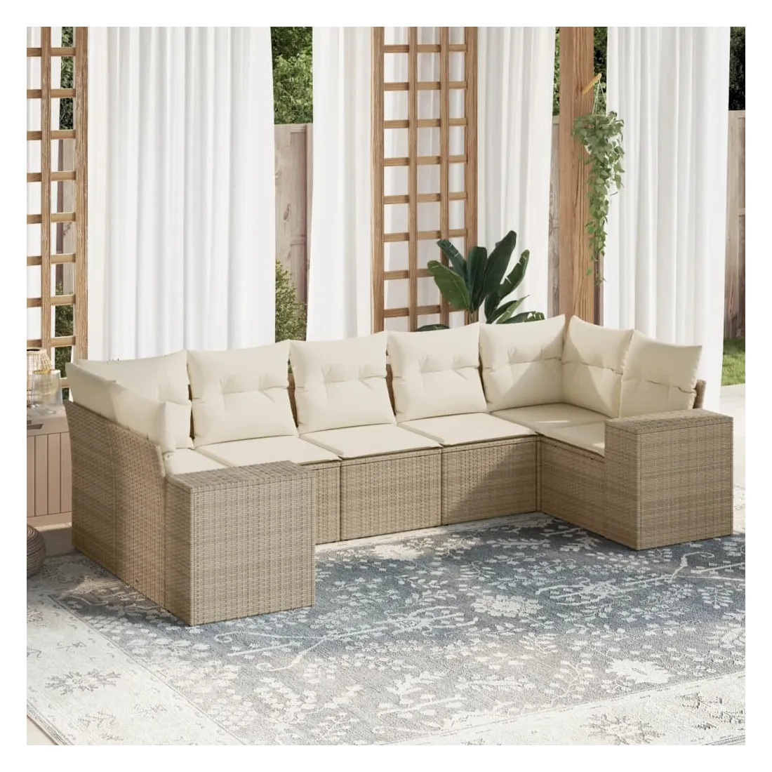 Cet ensemble de canapés de jardin est le complément parfait de votre arrière-cour, terrasse ou patio, offrant un espace confortable et accueillant pour discuter avec la famille et les amis ou simplement se détendre et profiter de l'extérieur. Matériau durable : la résine tressée, également connue sous le nom de poly rotin, est un matériau synthétique solide et nécessitant peu d'entretien qui ressemble au rotin naturel. Il est léger, facile à nettoyer et couramment utilisé pour les meubles d'extérieur en raison de sa durabilité et de ses propriétés de résistance aux intempéries.Expérience d'assise confortable : ce mobilier d'extérieur, doté de coussins épais, offre une expérience d'assise confortable.Housse amovible et lavable : ces coussins de siège sont dotés de housses amovibles pour un lavage et un entretien faciles.Conception modulaire : cet ensemble de meubles d'extérieur a une conception modulaire, ce qui le rend complètement flexible et facile à déplacer, afin que vous puissiez créer un agencement de meubles d'extérieur personnalisé. Bon à savoir :Pour que vos meubles d'extérieur restent beaux, nous vous recommandons de les protéger avec une housse imperméable.