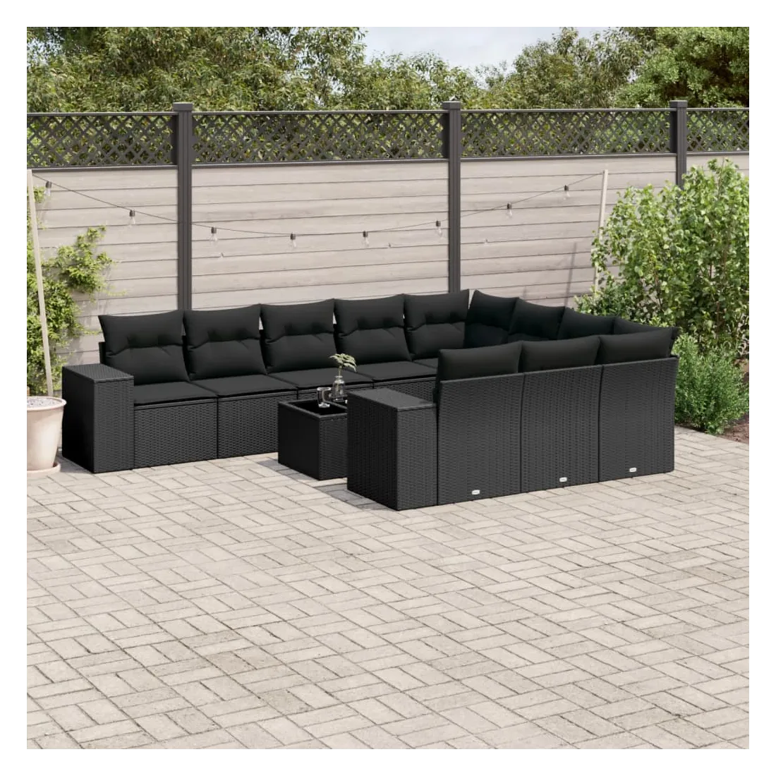 Cet ensemble de canapés de jardin est le complément parfait de votre arrière-cour, terrasse ou patio, offrant un espace confortable et accueillant pour discuter avec la famille et les amis ou simplement se détendre et profiter de l'extérieur. Matériau durable : la résine tressée, également connue sous le nom de poly rotin, est un matériau synthétique solide et nécessitant peu d'entretien qui ressemble au rotin naturel. Il est léger, facile à nettoyer et couramment utilisé pour les meubles d'extérieur en raison de sa durabilité et de ses propriétés de résistance aux intempéries.Expérience d'assise confortable : ce mobilier d'extérieur, doté de coussins épais, offre une expérience d'assise confortable.Dessus en verre : le dessus de la table d'extérieur est fabriqué en verre trempé solide et durable, ce qui le rend facile à nettoyer avec un chiffon humide et ajoute une touche d'élégance à votre espace extérieur.Housse amovible et lavable : ces coussins de siège sont dotés de housses amovibles pour un lavage et un entretien faciles.Conception modulaire : cet ensemble de meubles d'extérieur a une conception modulaire, ce qui le rend complètement flexible et facile à déplacer, afin que vous puissiez créer un agencement de meubles d'extérieur personnalisé. Bon à savoir :Pour que vos meubles d'extérieur restent beaux, nous vous recommandons de les protéger avec une housse imperméable.