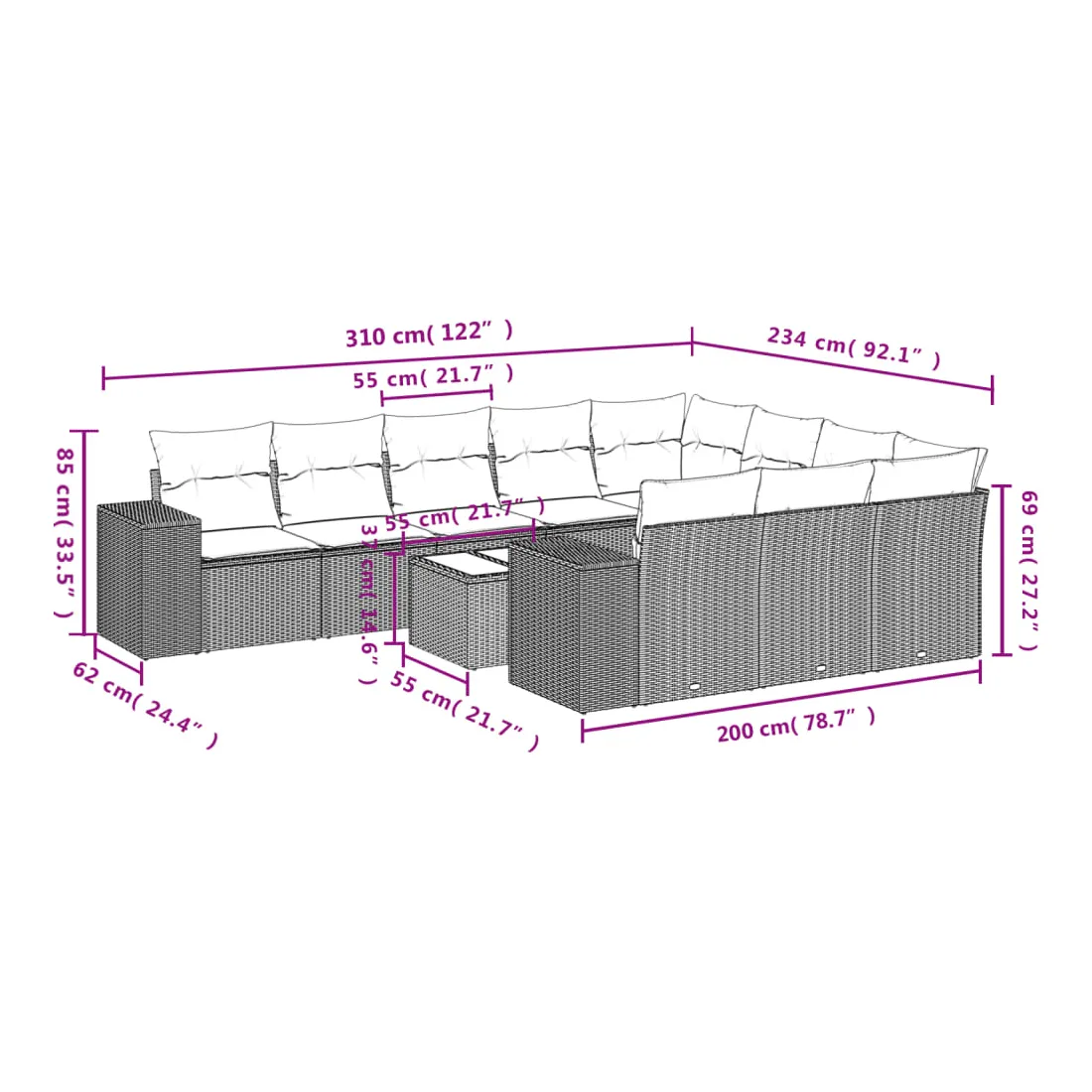 - Dimensions du coussin de dossier : 55 x 45 x 13 cm (L x l x é)
