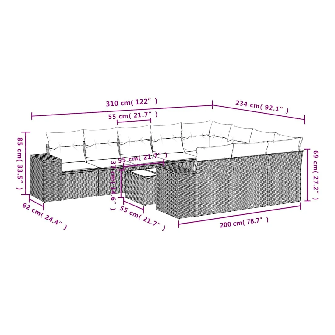 Salon de jardin 11 pcs avec coussins gris clair résine tressée