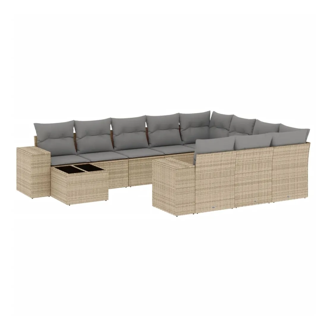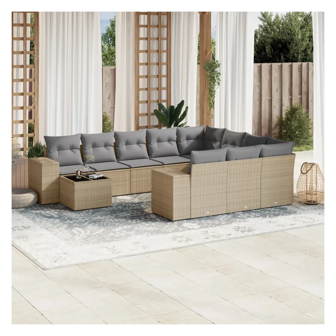 Salon de jardin 11 pcs avec coussins beige résine tressée