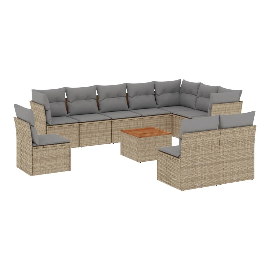 Cet ensemble de canapés de jardin est le complément parfait de votre arrière-cour, terrasse ou patio, offrant un espace confortable et accueillant pour discuter avec la famille et les amis ou simplement se détendre et profiter de l'extérieur. Matériau durable : la résine tressée, également connue sous le nom de poly rotin, est un matériau synthétique solide et nécessitant peu d'entretien qui ressemble au rotin naturel. Il est léger, facile à nettoyer et couramment utilisé pour les meubles d'extérieur en raison de sa durabilité et de ses propriétés de résistance aux intempéries.Expérience d'assise confortable : ce mobilier d'extérieur, doté de coussins épais, offre une expérience d'assise confortable.Dessus stable et facile à nettoyer : cette table de jardin a un dessus en bois d'acacia robuste, durable et facile à nettoyer avec un chiffon humide.Housse amovible et lavable : ces coussins de siège sont dotés de housses amovibles pour un lavage et un entretien faciles.Conception modulaire : cet ensemble de meubles d'extérieur a une conception modulaire, ce qui le rend complètement flexible et facile à déplacer, afin que vous puissiez créer un agencement de meubles d'extérieur personnalisé. Bon à savoir :Pour que vos meubles d'extérieur restent beaux, nous vous recommandons de les protéger avec une housse imperméable.