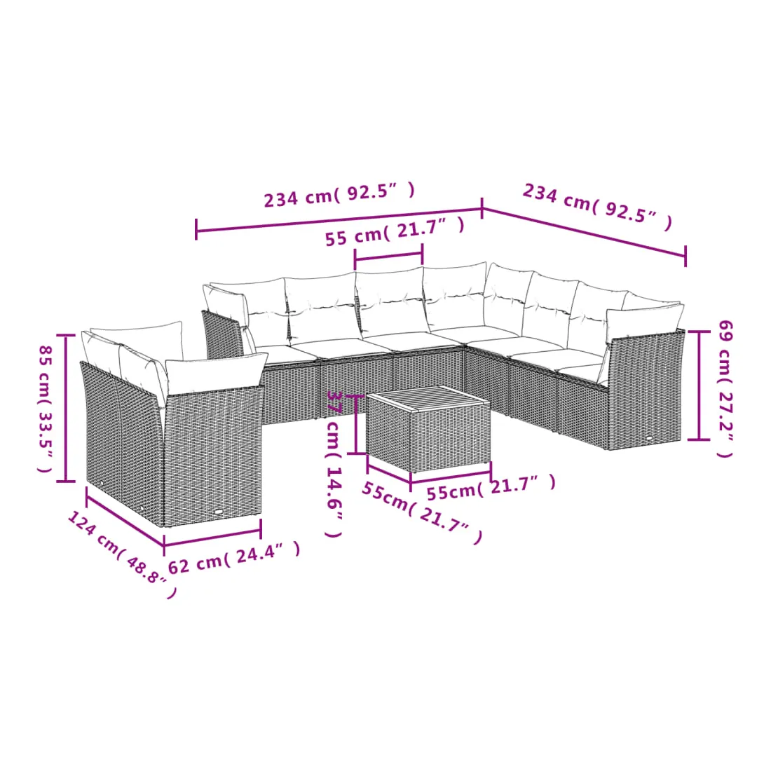 Cet ensemble de canapés de jardin est le complément parfait de votre arrière-cour, terrasse ou patio, offrant un espace confortable et accueillant pour discuter avec la famille et les amis ou simplement se détendre et profiter de l'extérieur. Matériau durable : la résine tressée, également connue sous le nom de poly rotin, est un matériau synthétique solide et nécessitant peu d'entretien qui ressemble au rotin naturel. Il est léger, facile à nettoyer et couramment utilisé pour les meubles d'extérieur en raison de sa durabilité et de ses propriétés de résistance aux intempéries.Expérience d'assise confortable : ce mobilier d'extérieur, doté de coussins épais, offre une expérience d'assise confortable.Dessus stable et facile à nettoyer : cette table de jardin a un dessus en bois d'acacia robuste, durable et facile à nettoyer avec un chiffon humide.Housse amovible et lavable : ces coussins de siège sont dotés de housses amovibles pour un lavage et un entretien faciles.Conception modulaire : cet ensemble de meubles d'extérieur a une conception modulaire, ce qui le rend complètement flexible et facile à déplacer, afin que vous puissiez créer un agencement de meubles d'extérieur personnalisé. Bon à savoir :Pour que vos meubles d'extérieur restent beaux, nous vous recommandons de les protéger avec une housse imperméable.