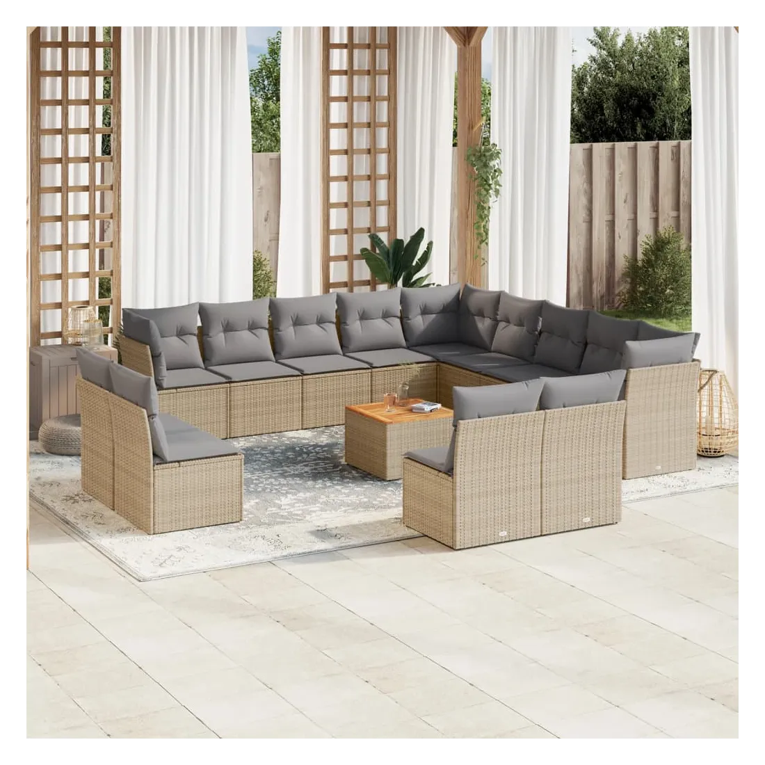Cet ensemble de canapés de jardin est le complément parfait de votre arrière-cour, terrasse ou patio, offrant un espace confortable et accueillant pour discuter avec la famille et les amis ou simplement se détendre et profiter de l'extérieur. Matériau durable : la résine tressée, également connue sous le nom de poly rotin, est un matériau synthétique solide et nécessitant peu d'entretien qui ressemble au rotin naturel. Il est léger, facile à nettoyer et couramment utilisé pour les meubles d'extérieur en raison de sa durabilité et de ses propriétés de résistance aux intempéries.Expérience d'assise confortable : ce mobilier d'extérieur, doté de coussins épais, offre une expérience d'assise confortable.Dessus stable et facile à nettoyer : cette table de jardin a un dessus en bois d'acacia robuste, durable et facile à nettoyer avec un chiffon humide.Housse amovible et lavable : ces coussins de siège sont dotés de housses amovibles pour un lavage et un entretien faciles.Conception modulaire : cet ensemble de meubles d'extérieur a une conception modulaire, ce qui le rend complètement flexible et facile à déplacer, afin que vous puissiez créer un agencement de meubles d'extérieur personnalisé. Bon à savoir :Pour que vos meubles d'extérieur restent beaux, nous vous recommandons de les protéger avec une housse imperméable.