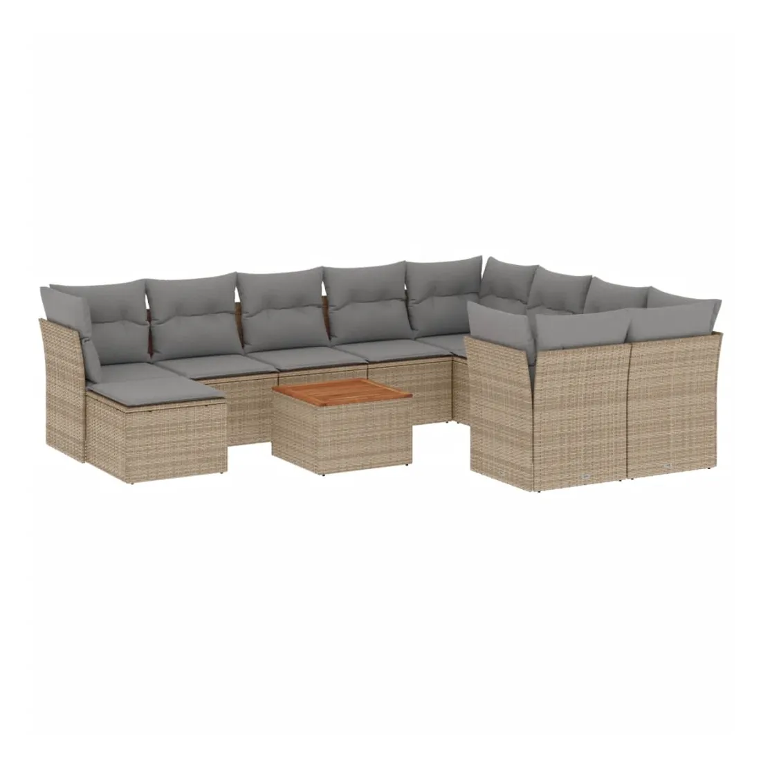 Cet ensemble de canapés de jardin est le complément parfait de votre arrière-cour, terrasse ou patio, offrant un espace confortable et accueillant pour discuter avec la famille et les amis ou simplement se détendre et profiter de l'extérieur. Matériau durable : la résine tressée, également connue sous le nom de poly rotin, est un matériau synthétique solide et nécessitant peu d'entretien qui ressemble au rotin naturel. Il est léger, facile à nettoyer et couramment utilisé pour les meubles d'extérieur en raison de sa durabilité et de ses propriétés de résistance aux intempéries.Expérience d'assise confortable : ce mobilier d'extérieur, doté de coussins épais, offre une expérience d'assise confortable.Dessus stable et facile à nettoyer : cette table de jardin a un dessus en bois d'acacia robuste, durable et facile à nettoyer avec un chiffon humide.Housse amovible et lavable : ces coussins de siège sont dotés de housses amovibles pour un lavage et un entretien faciles.Conception modulaire : cet ensemble de meubles d'extérieur a une conception modulaire, ce qui le rend complètement flexible et facile à déplacer, afin que vous puissiez créer un agencement de meubles d'extérieur personnalisé. Bon à savoir :Pour que vos meubles d'extérieur restent beaux, nous vous recommandons de les protéger avec une housse imperméable.