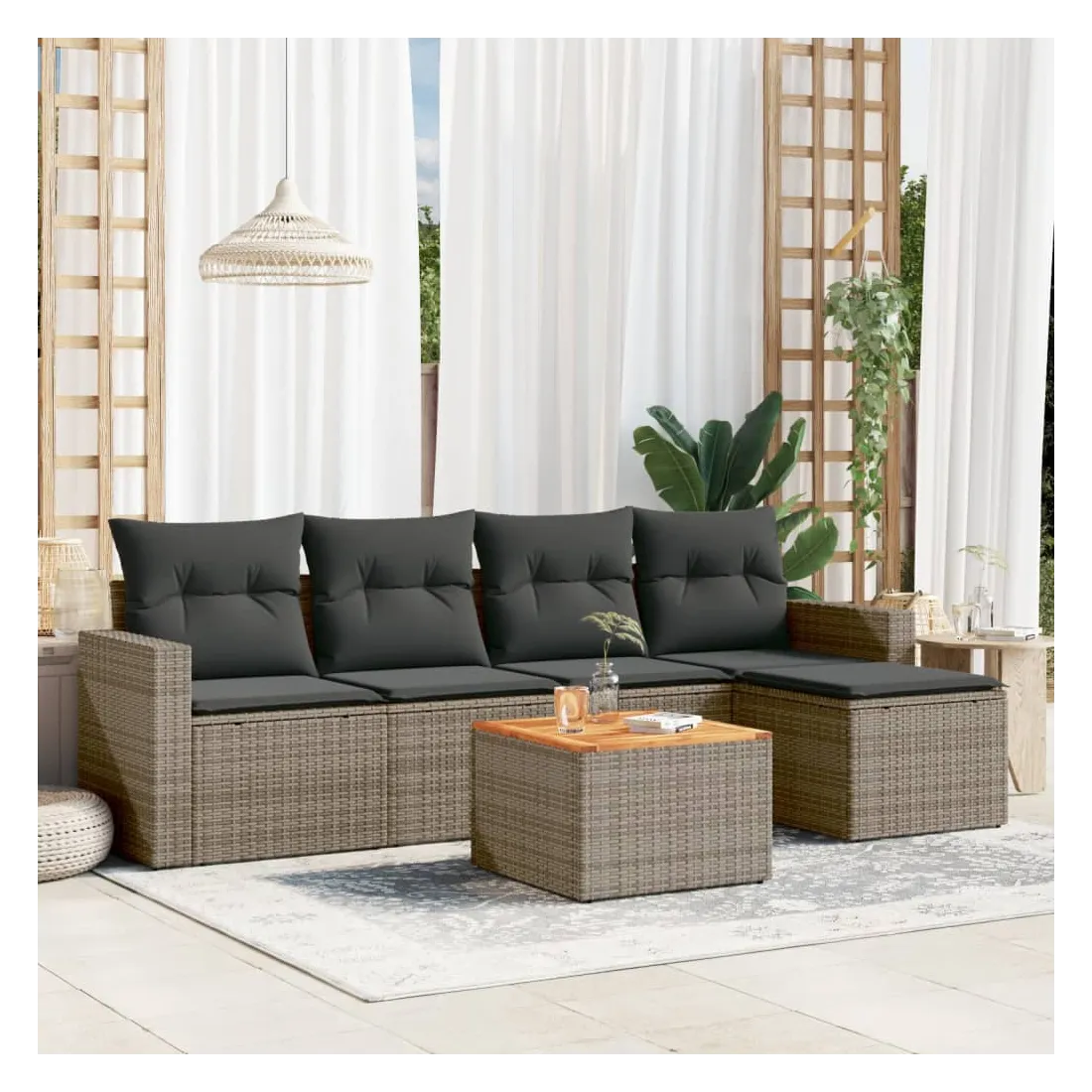 Cet ensemble de canapés de jardin est le complément parfait de votre arrière-cour, terrasse ou patio, offrant un espace confortable et accueillant pour discuter avec la famille et les amis ou simplement se détendre et profiter de l'extérieur. Matériau durable : la résine tressée, également connue sous le nom de poly rotin, est un matériau synthétique solide et nécessitant peu d'entretien qui ressemble au rotin naturel. Il est léger, facile à nettoyer et couramment utilisé pour les meubles d'extérieur en raison de sa durabilité et de ses propriétés de résistance aux intempéries.Expérience d'assise confortable : ce mobilier d'extérieur, doté de coussins épais, offre une expérience d'assise confortable.Dessus stable et facile à nettoyer : cette table de jardin a un dessus en bois d'acacia robuste, durable et facile à nettoyer avec un chiffon humide.Housse amovible et lavable : ces coussins de siège sont dotés de housses amovibles pour un lavage et un entretien faciles.Conception modulaire : cet ensemble de meubles d'extérieur a une conception modulaire, ce qui le rend complètement flexible et facile à déplacer, afin que vous puissiez créer un agencement de meubles d'extérieur personnalisé. Bon à savoir :Pour que vos meubles d'extérieur restent beaux, nous vous recommandons de les protéger avec une housse imperméable.