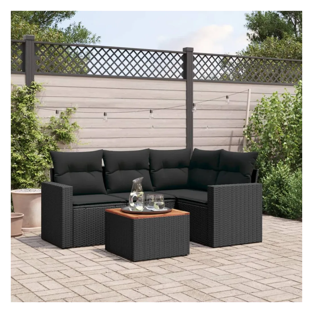 Cet ensemble de canapés de jardin est le complément parfait de votre arrière-cour, terrasse ou patio, offrant un espace confortable et accueillant pour discuter avec la famille et les amis ou simplement se détendre et profiter de l'extérieur. Matériau durable : la résine tressée, également connue sous le nom de poly rotin, est un matériau synthétique solide et nécessitant peu d'entretien qui ressemble au rotin naturel. Il est léger, facile à nettoyer et couramment utilisé pour les meubles d'extérieur en raison de sa durabilité et de ses propriétés de résistance aux intempéries.Expérience d'assise confortable : ce mobilier d'extérieur, doté de coussins épais, offre une expérience d'assise confortable.Dessus stable et facile à nettoyer : cette table de jardin a un dessus en bois d'acacia robuste, durable et facile à nettoyer avec un chiffon humide.Housse amovible et lavable : ces coussins de siège sont dotés de housses amovibles pour un lavage et un entretien faciles.Conception modulaire : cet ensemble de meubles d'extérieur a une conception modulaire, ce qui le rend complètement flexible et facile à déplacer, afin que vous puissiez créer un agencement de meubles d'extérieur personnalisé. Bon à savoir :Pour que vos meubles d'extérieur restent beaux, nous vous recommandons de les protéger avec une housse imperméable.