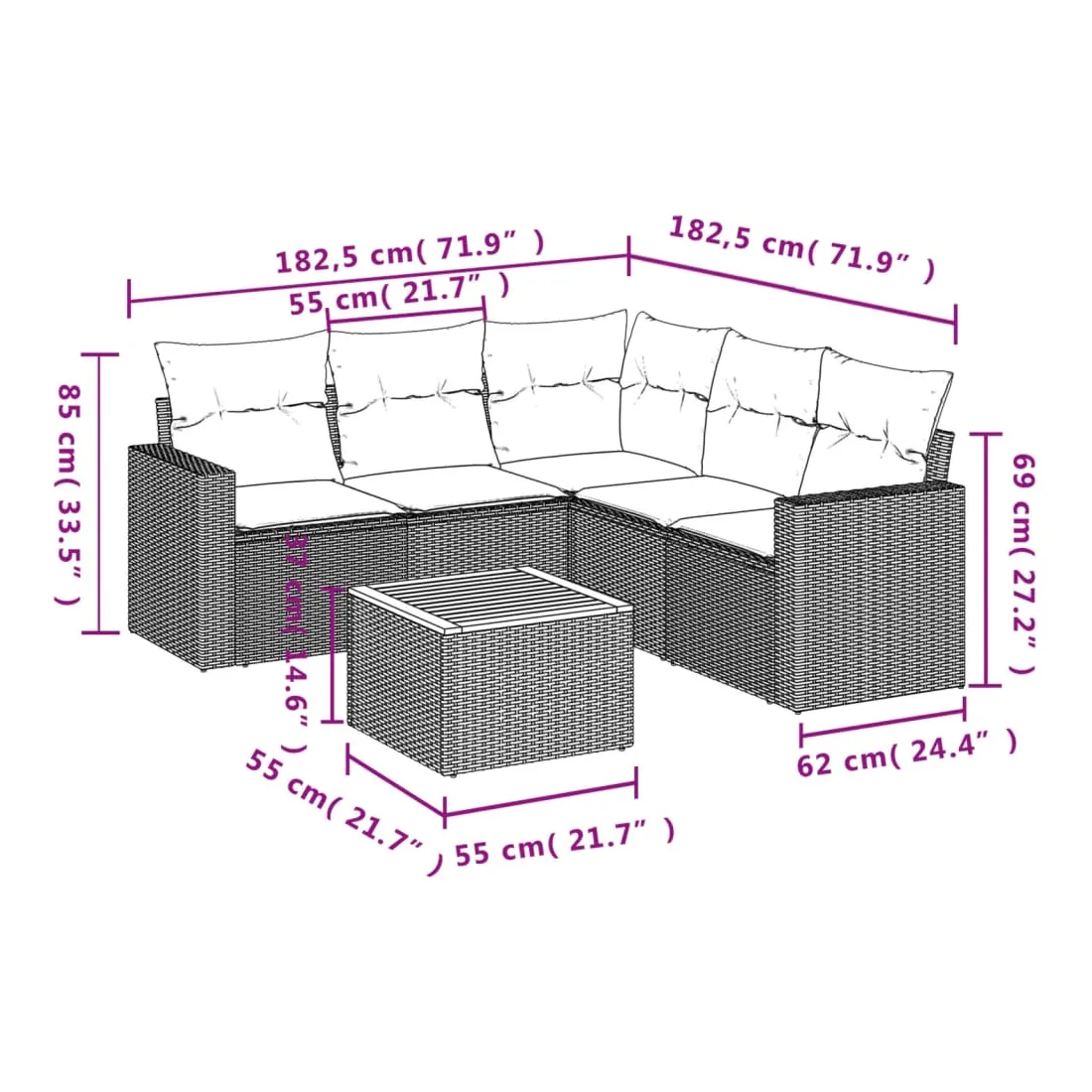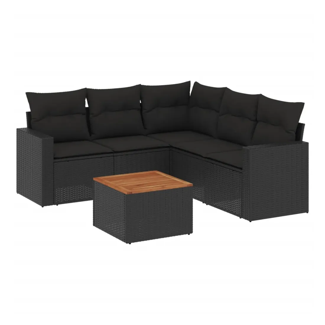 Salon de jardin 6 pcs avec coussins noir résine tressée