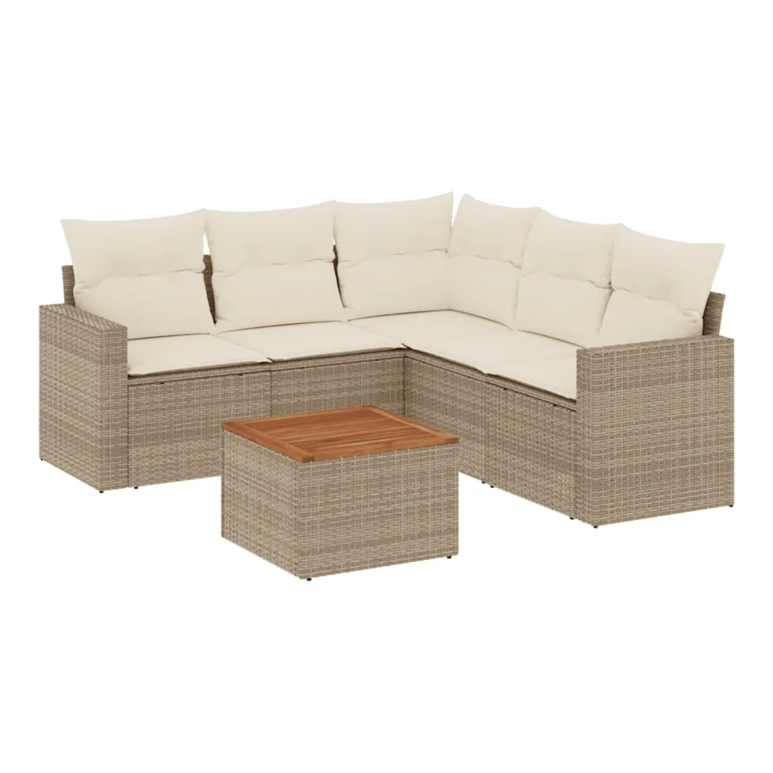 Salon de jardin avec coussins 6 pcs beige résine tressée