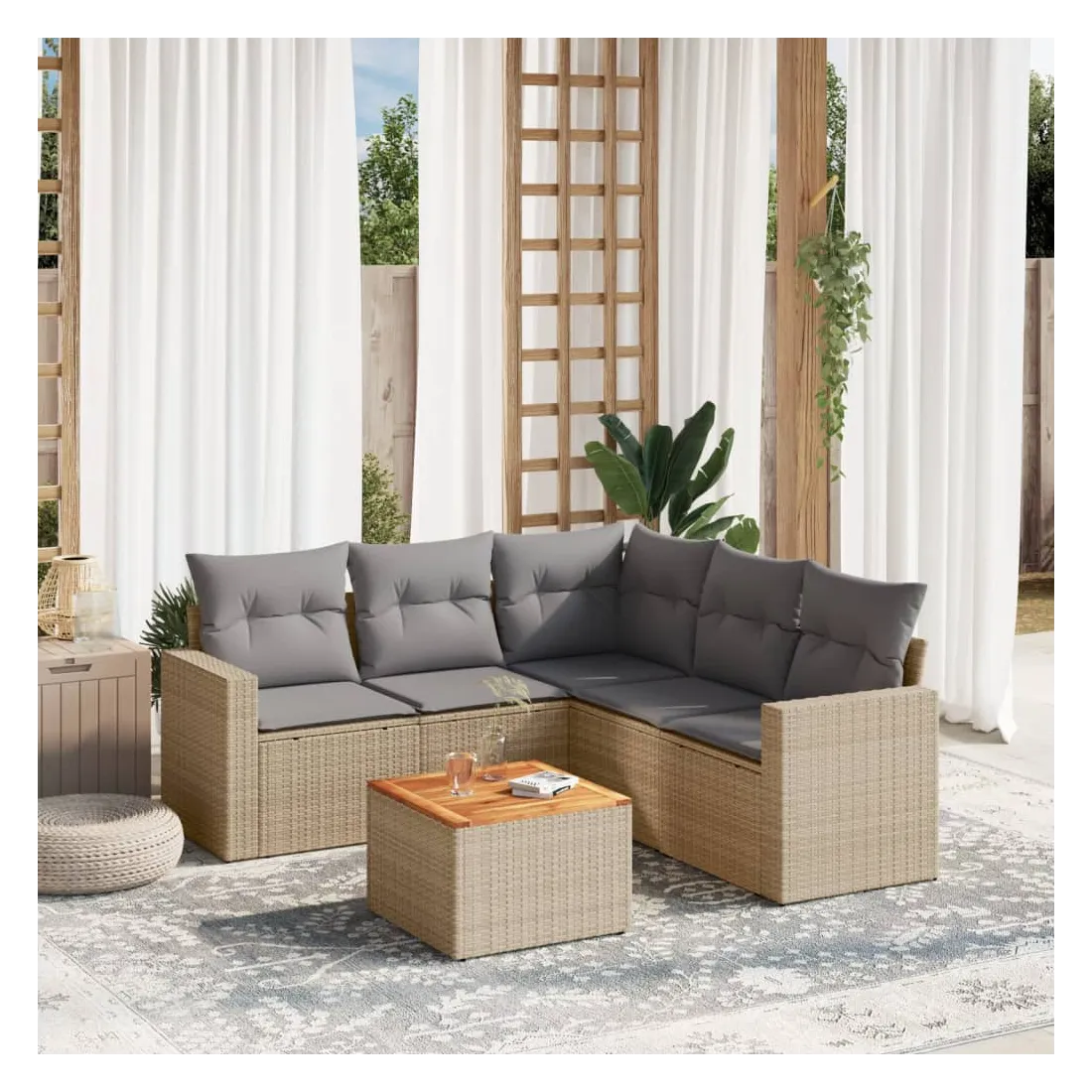 Salon de jardin avec coussins 6 pcs beige résine tressée