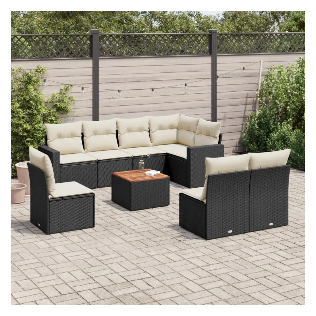 Cet ensemble de canapés de jardin est le complément parfait de votre arrière-cour, terrasse ou patio, offrant un espace confortable et accueillant pour discuter avec la famille et les amis ou simplement se détendre et profiter de l'extérieur. Matériau durable : la résine tressée, également connue sous le nom de poly rotin, est un matériau synthétique solide et nécessitant peu d'entretien qui ressemble au rotin naturel. Il est léger, facile à nettoyer et couramment utilisé pour les meubles d'extérieur en raison de sa durabilité et de ses propriétés de résistance aux intempéries.Expérience d'assise confortable : ce mobilier d'extérieur, doté de coussins épais, offre une expérience d'assise confortable.Dessus stable et facile à nettoyer : cette table de jardin a un dessus en bois d'acacia robuste, durable et facile à nettoyer avec un chiffon humide.Housse amovible et lavable : ces coussins de siège sont dotés de housses amovibles pour un lavage et un entretien faciles.Conception modulaire : cet ensemble de meubles d'extérieur a une conception modulaire, ce qui le rend complètement flexible et facile à déplacer, afin que vous puissiez créer un agencement de meubles d'extérieur personnalisé. Bon à savoir :Pour que vos meubles d'extérieur restent beaux, nous vous recommandons de les protéger avec une housse imperméable.