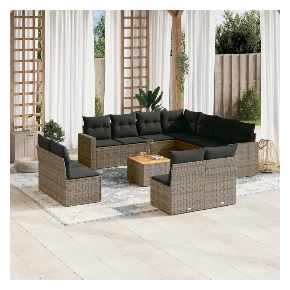 Cet ensemble de canapés de jardin est le complément parfait de votre arrière-cour, terrasse ou patio, offrant un espace confortable et accueillant pour discuter avec la famille et les amis ou simplement se détendre et profiter de l'extérieur. Matériau durable : la résine tressée, également connue sous le nom de poly rotin, est un matériau synthétique solide et nécessitant peu d'entretien qui ressemble au rotin naturel. Il est léger, facile à nettoyer et couramment utilisé pour les meubles d'extérieur en raison de sa durabilité et de ses propriétés de résistance aux intempéries.Expérience d'assise confortable : ce mobilier d'extérieur, doté de coussins épais, offre une expérience d'assise confortable.Dessus stable et facile à nettoyer : cette table de jardin a un dessus en bois d'acacia robuste, durable et facile à nettoyer avec un chiffon humide.Housse amovible et lavable : ces coussins de siège sont dotés de housses amovibles pour un lavage et un entretien faciles.Conception modulaire : cet ensemble de meubles d'extérieur a une conception modulaire, ce qui le rend complètement flexible et facile à déplacer, afin que vous puissiez créer un agencement de meubles d'extérieur personnalisé. Bon à savoir :Pour que vos meubles d'extérieur restent beaux, nous vous recommandons de les protéger avec une housse imperméable.