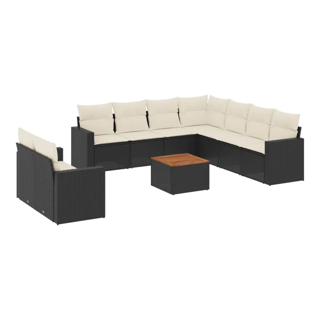Cet ensemble de canapés de jardin est le complément parfait de votre arrière-cour, terrasse ou patio, offrant un espace confortable et accueillant pour discuter avec la famille et les amis ou simplement se détendre et profiter de l'extérieur. Matériau durable : la résine tressée, également connue sous le nom de poly rotin, est un matériau synthétique solide et nécessitant peu d'entretien qui ressemble au rotin naturel. Il est léger, facile à nettoyer et couramment utilisé pour les meubles d'extérieur en raison de sa durabilité et de ses propriétés de résistance aux intempéries.Expérience d'assise confortable : ce mobilier d'extérieur, doté de coussins épais, offre une expérience d'assise confortable.Dessus stable et facile à nettoyer : cette table de jardin a un dessus en bois d'acacia robuste, durable et facile à nettoyer avec un chiffon humide.Housse amovible et lavable : ces coussins de siège sont dotés de housses amovibles pour un lavage et un entretien faciles.Conception modulaire : cet ensemble de meubles d'extérieur a une conception modulaire, ce qui le rend complètement flexible et facile à déplacer, afin que vous puissiez créer un agencement de meubles d'extérieur personnalisé. Bon à savoir :Pour que vos meubles d'extérieur restent beaux, nous vous recommandons de les protéger avec une housse imperméable.