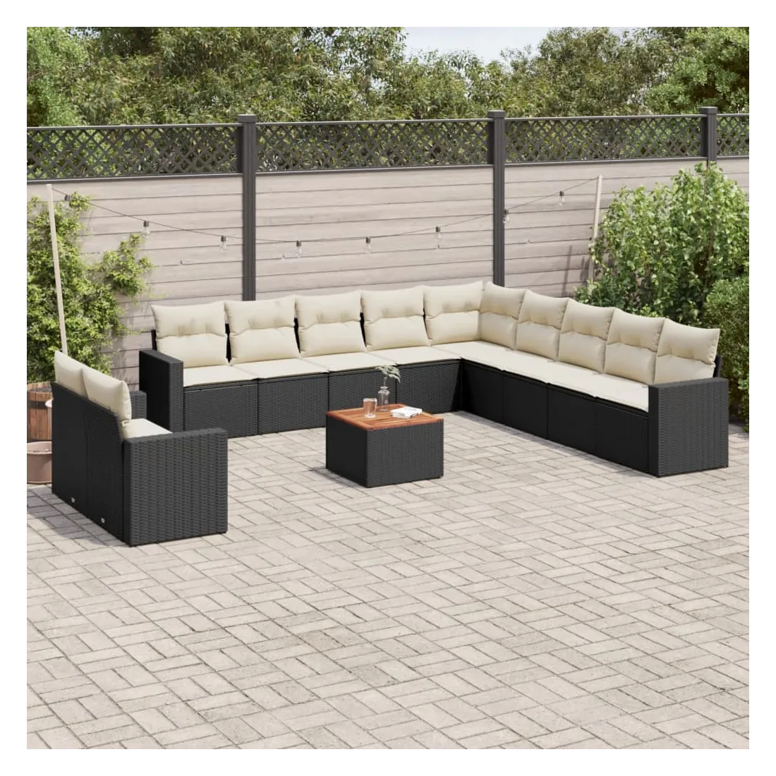Cet ensemble de canapés de jardin est le complément parfait de votre arrière-cour, terrasse ou patio, offrant un espace confortable et accueillant pour discuter avec la famille et les amis ou simplement se détendre et profiter de l'extérieur. Matériau durable : la résine tressée, également connue sous le nom de poly rotin, est un matériau synthétique solide et nécessitant peu d'entretien qui ressemble au rotin naturel. Il est léger, facile à nettoyer et couramment utilisé pour les meubles d'extérieur en raison de sa durabilité et de ses propriétés de résistance aux intempéries.Expérience d'assise confortable : ce mobilier d'extérieur, doté de coussins épais, offre une expérience d'assise confortable.Dessus stable et facile à nettoyer : cette table de jardin a un dessus en bois d'acacia robuste, durable et facile à nettoyer avec un chiffon humide.Housse amovible et lavable : ces coussins de siège sont dotés de housses amovibles pour un lavage et un entretien faciles.Conception modulaire : cet ensemble de meubles d'extérieur a une conception modulaire, ce qui le rend complètement flexible et facile à déplacer, afin que vous puissiez créer un agencement de meubles d'extérieur personnalisé. Bon à savoir :Pour que vos meubles d'extérieur restent beaux, nous vous recommandons de les protéger avec une housse imperméable.