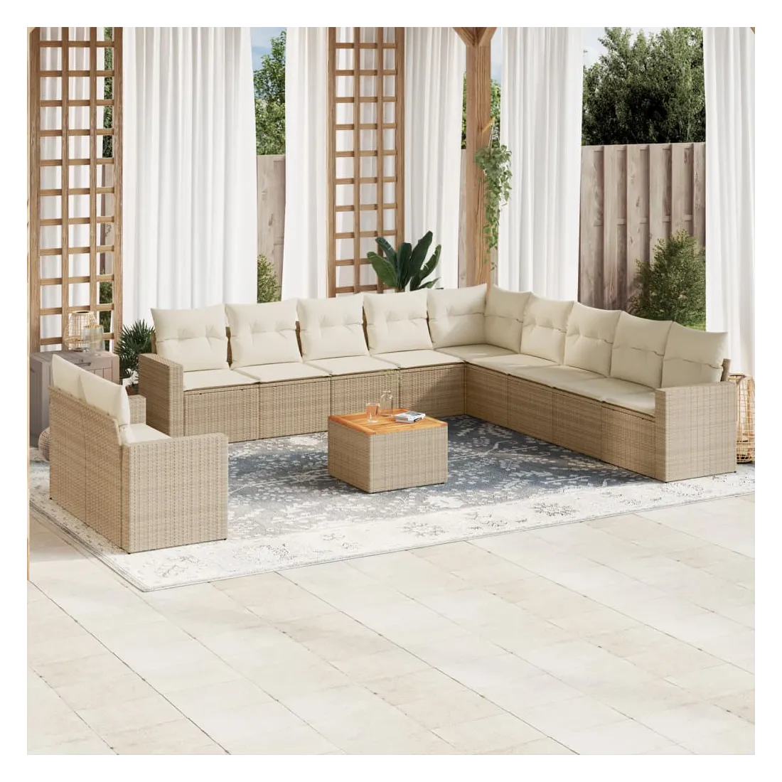 Cet ensemble de canapés de jardin est le complément parfait de votre arrière-cour, terrasse ou patio, offrant un espace confortable et accueillant pour discuter avec la famille et les amis ou simplement se détendre et profiter de l'extérieur. Matériau durable : la résine tressée, également connue sous le nom de poly rotin, est un matériau synthétique solide et nécessitant peu d'entretien qui ressemble au rotin naturel. Il est léger, facile à nettoyer et couramment utilisé pour les meubles d'extérieur en raison de sa durabilité et de ses propriétés de résistance aux intempéries.Expérience d'assise confortable : ce mobilier d'extérieur, doté de coussins épais, offre une expérience d'assise confortable.Dessus stable et facile à nettoyer : cette table de jardin a un dessus en bois d'acacia robuste, durable et facile à nettoyer avec un chiffon humide.Housse amovible et lavable : ces coussins de siège sont dotés de housses amovibles pour un lavage et un entretien faciles.Conception modulaire : cet ensemble de meubles d'extérieur a une conception modulaire, ce qui le rend complètement flexible et facile à déplacer, afin que vous puissiez créer un agencement de meubles d'extérieur personnalisé. Bon à savoir :Pour que vos meubles d'extérieur restent beaux, nous vous recommandons de les protéger avec une housse imperméable.