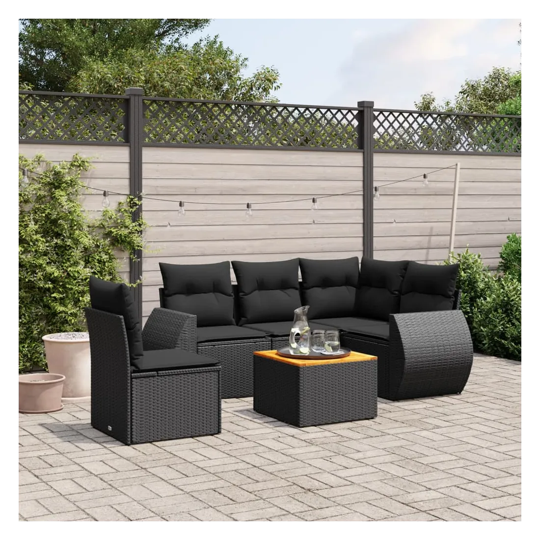Salon de jardin 6 pcs avec coussins noir résine tressée