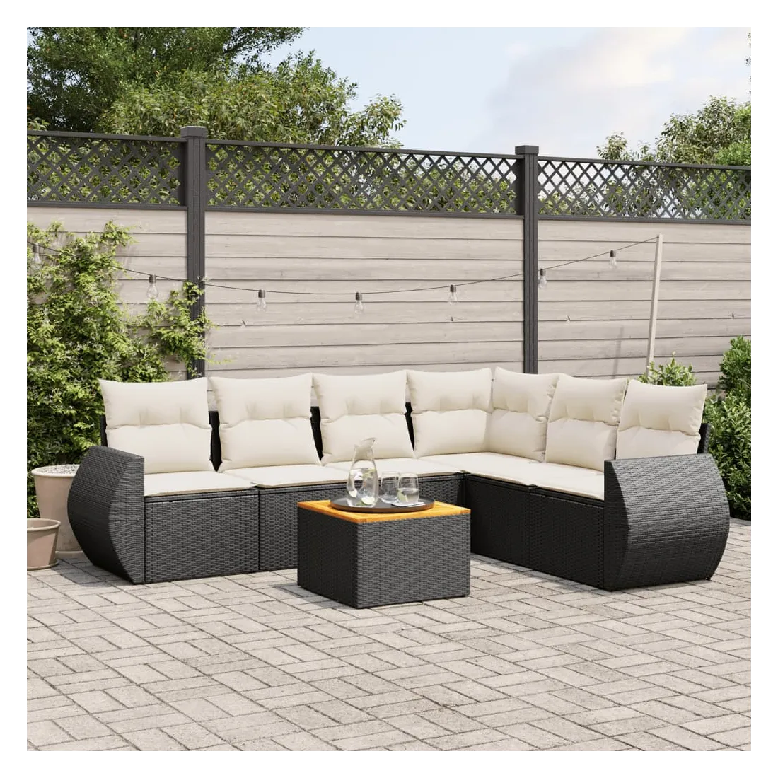 Cet ensemble de canapés de jardin est le complément parfait de votre arrière-cour, terrasse ou patio, offrant un espace confortable et accueillant pour discuter avec la famille et les amis ou simplement se détendre et profiter de l'extérieur. Matériau durable : la résine tressée, également connue sous le nom de poly rotin, est un matériau synthétique solide et nécessitant peu d'entretien qui ressemble au rotin naturel. Il est léger, facile à nettoyer et couramment utilisé pour les meubles d'extérieur en raison de sa durabilité et de ses propriétés de résistance aux intempéries.Dessus stable et facile à nettoyer : cette table de jardin a un dessus en bois d'acacia robuste, durable et facile à nettoyer avec un chiffon humide. Expérience d'assise confortable : ce mobilier d'extérieur, doté de coussins épais, offre une expérience d'assise confortable.Housse amovible et lavable : ces coussins de siège sont dotés de housses amovibles pour un lavage et un entretien faciles.Conception modulaire : cet ensemble de meubles d'extérieur a une conception modulaire, ce qui le rend complètement flexible et facile à déplacer, afin que vous puissiez créer un agencement de meubles d'extérieur personnalisé. Bon à savoir :Pour que vos meubles d'extérieur restent beaux, nous vous recommandons de les protéger avec une housse imperméable.