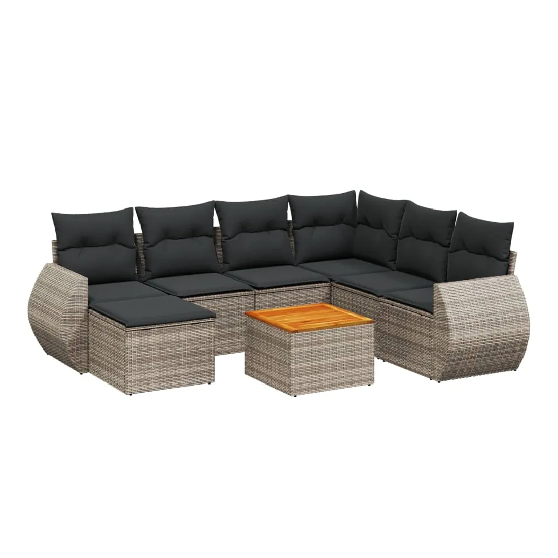 Cet ensemble de canapés de jardin est le complément parfait de votre arrière-cour, terrasse ou patio, offrant un espace confortable et accueillant pour discuter avec la famille et les amis ou simplement se détendre et profiter de l'extérieur. Matériau durable : la résine tressée, également connue sous le nom de poly rotin, est un matériau synthétique solide et nécessitant peu d'entretien qui ressemble au rotin naturel. Il est léger, facile à nettoyer et couramment utilisé pour les meubles d'extérieur en raison de sa durabilité et de ses propriétés de résistance aux intempéries.Dessus stable et facile à nettoyer : cette table de jardin a un dessus en bois d'acacia robuste, durable et facile à nettoyer avec un chiffon humide. Expérience d'assise confortable : ce mobilier d'extérieur, doté de coussins épais, offre une expérience d'assise confortable.Housse amovible et lavable : ces coussins de siège sont dotés de housses amovibles pour un lavage et un entretien faciles.Conception modulaire : cet ensemble de meubles d'extérieur a une conception modulaire, ce qui le rend complètement flexible et facile à déplacer, afin que vous puissiez créer un agencement de meubles d'extérieur personnalisé. Bon à savoir :Pour que vos meubles d'extérieur restent beaux, nous vous recommandons de les protéger avec une housse imperméable.