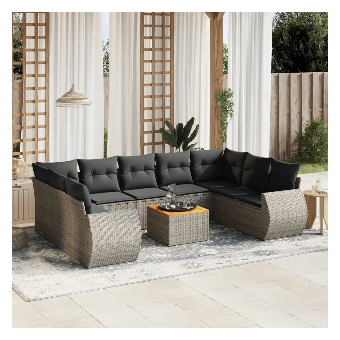 Salon de jardin avec coussins 10 pcs gris résine tressée