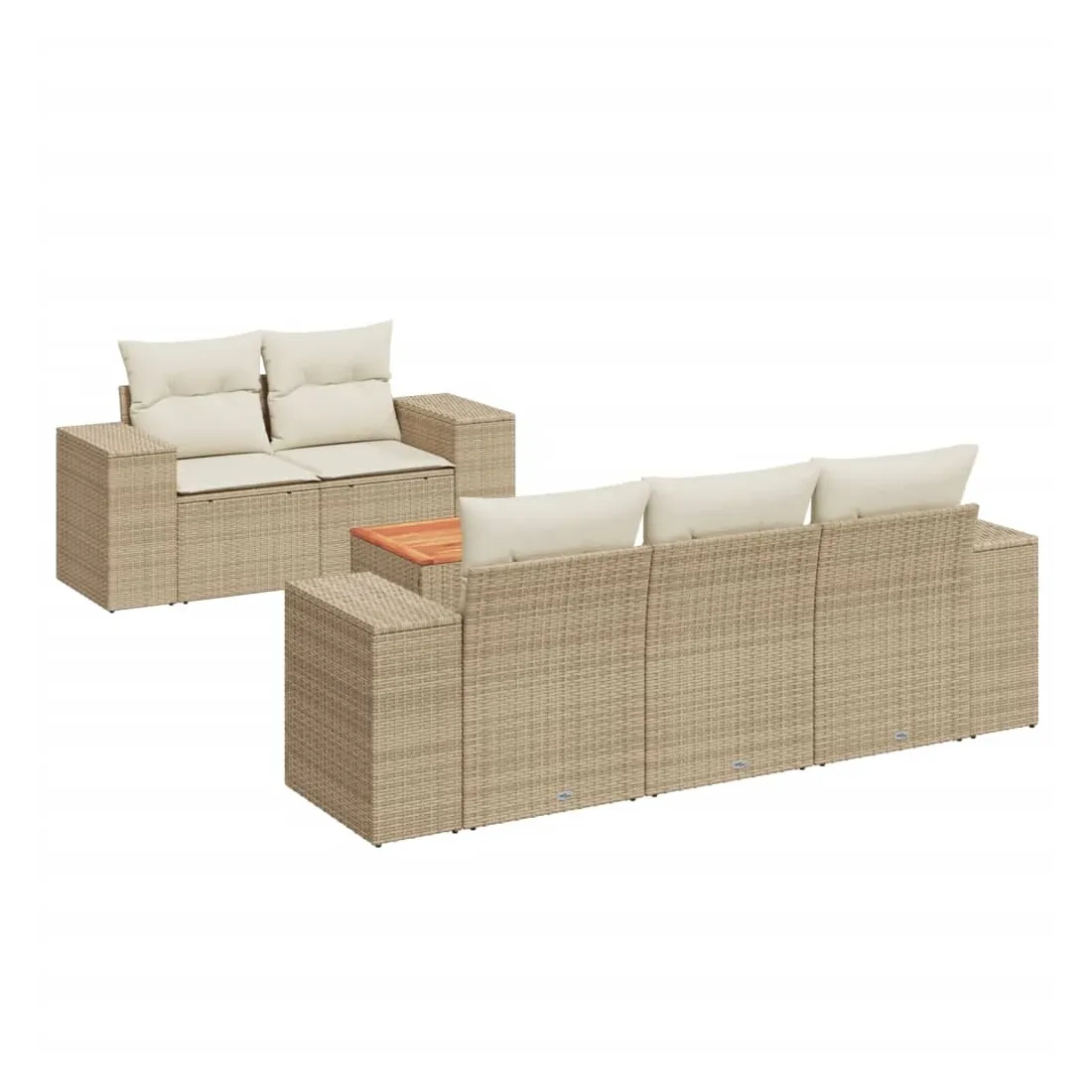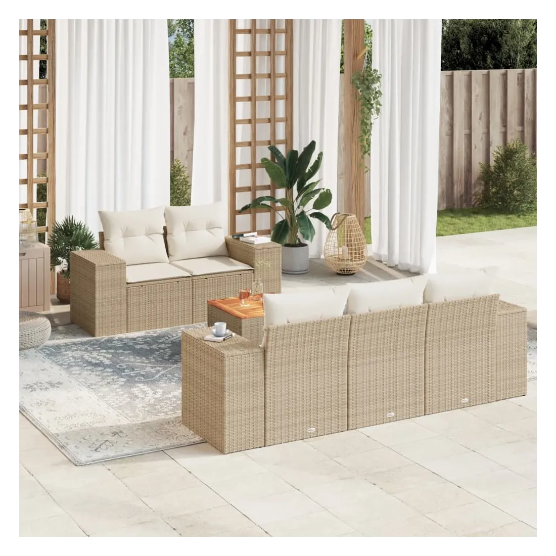 Cet ensemble de canapés de jardin est le complément parfait de votre arrière-cour, terrasse ou patio, offrant un espace confortable et accueillant pour discuter avec la famille et les amis ou simplement se détendre et profiter de l'extérieur. Matériau durable : la résine tressée, également connue sous le nom de poly rotin, est un matériau synthétique solide et nécessitant peu d'entretien qui ressemble au rotin naturel. Il est léger, facile à nettoyer et couramment utilisé pour les meubles d'extérieur en raison de sa durabilité et de ses propriétés de résistance aux intempéries.Dessus stable et facile à nettoyer : cette table de jardin a un dessus en bois d'acacia robuste, durable et facile à nettoyer avec un chiffon humide. Expérience d'assise confortable : ce mobilier d'extérieur, doté de coussins épais, offre une expérience d'assise confortable. Housse amovible et lavable : ces coussins de siège sont dotés de housses amovibles pour un lavage et un entretien faciles.Conception modulaire : cet ensemble de meubles d'extérieur a une conception modulaire, ce qui le rend complètement flexible et facile à déplacer, afin que vous puissiez créer un agencement de meubles d'extérieur personnalisé. Bon à savoir :Pour que vos meubles d'extérieur restent beaux, nous vous recommandons de les protéger avec une housse imperméable.