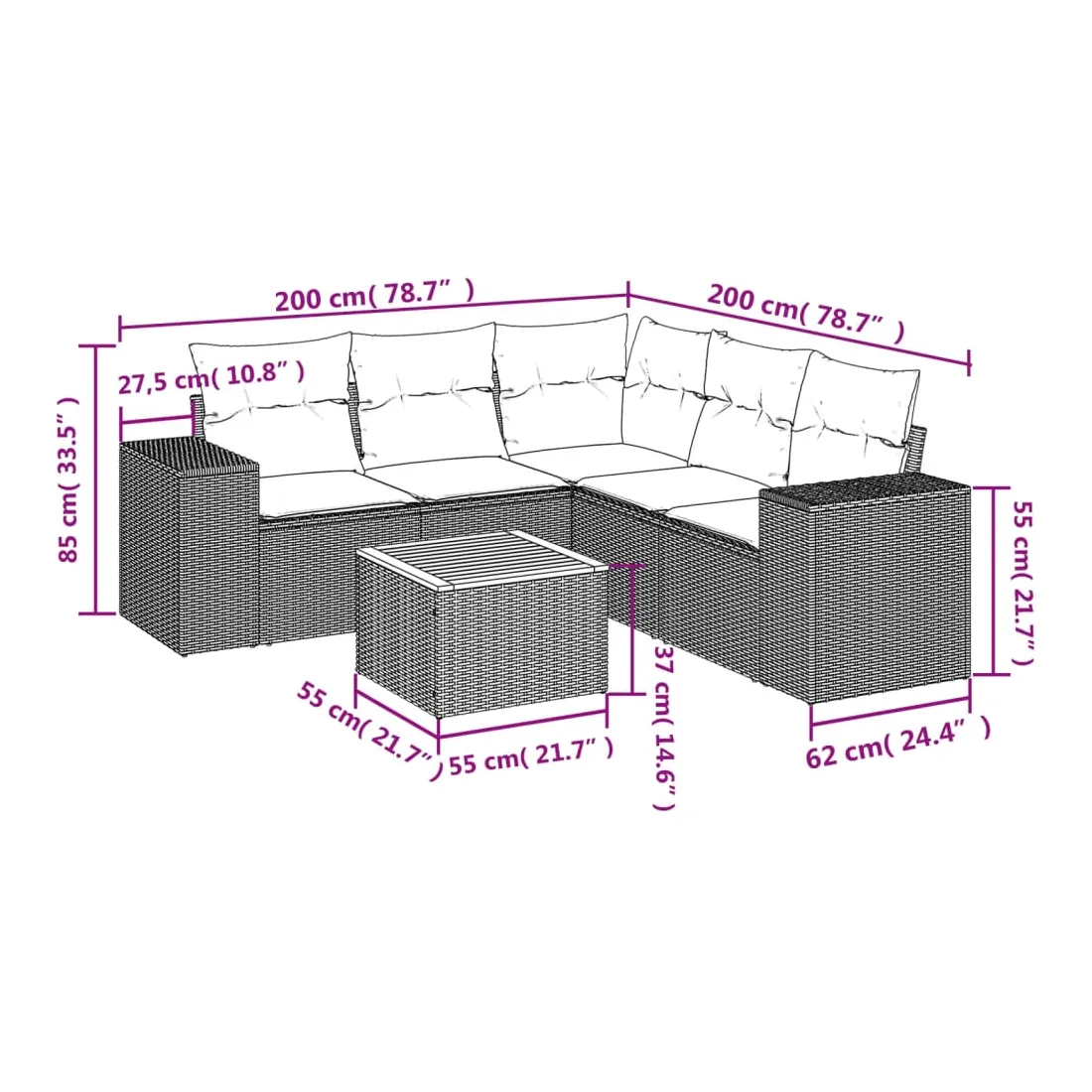 - Dimensions : 55 x 55 x 37 cm (L x l x H)