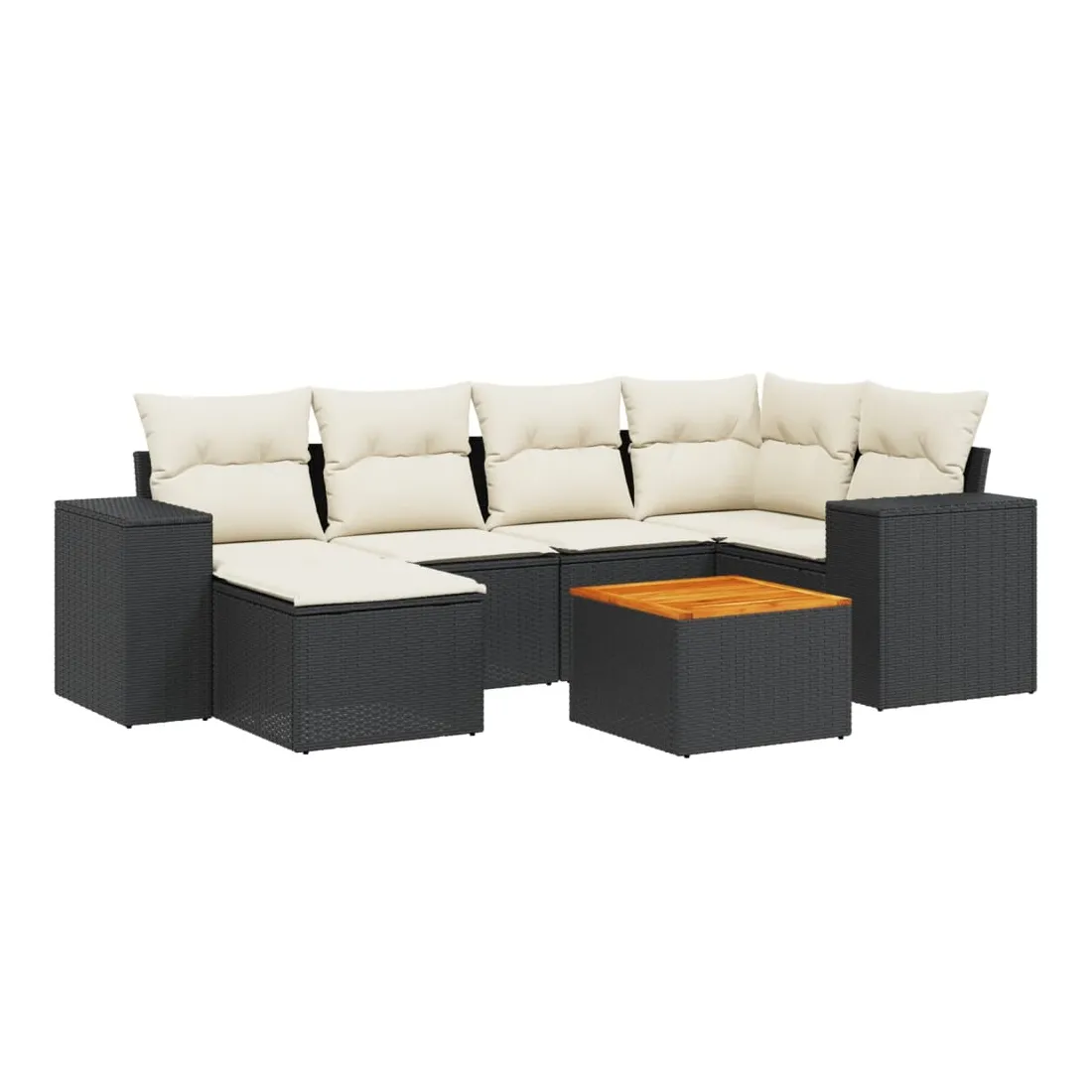 Cet ensemble de canapés de jardin est le complément parfait de votre arrière-cour, terrasse ou patio, offrant un espace confortable et accueillant pour discuter avec la famille et les amis ou simplement se détendre et profiter de l'extérieur. Matériau durable : la résine tressée, également connue sous le nom de poly rotin, est un matériau synthétique solide et nécessitant peu d'entretien qui ressemble au rotin naturel. Il est léger, facile à nettoyer et couramment utilisé pour les meubles d'extérieur en raison de sa durabilité et de ses propriétés de résistance aux intempéries.Dessus stable et facile à nettoyer : cette table de jardin a un dessus en bois d'acacia robuste, durable et facile à nettoyer avec un chiffon humide. Expérience d'assise confortable : ce mobilier d'extérieur, doté de coussins épais, offre une expérience d'assise confortable.Housse amovible et lavable : ces coussins de siège sont dotés de housses amovibles pour un lavage et un entretien faciles.Conception modulaire : cet ensemble de meubles d'extérieur a une conception modulaire, ce qui le rend complètement flexible et facile à déplacer, afin que vous puissiez créer un agencement de meubles d'extérieur personnalisé. Bon à savoir :Pour que vos meubles d'extérieur restent beaux, nous vous recommandons de les protéger avec une housse imperméable.