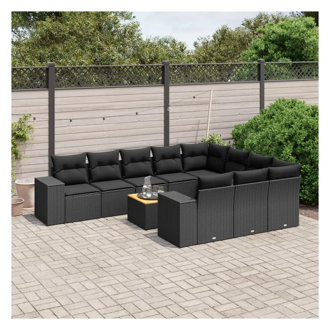 Salon de jardin 11 pcs avec coussins noir résine tressée