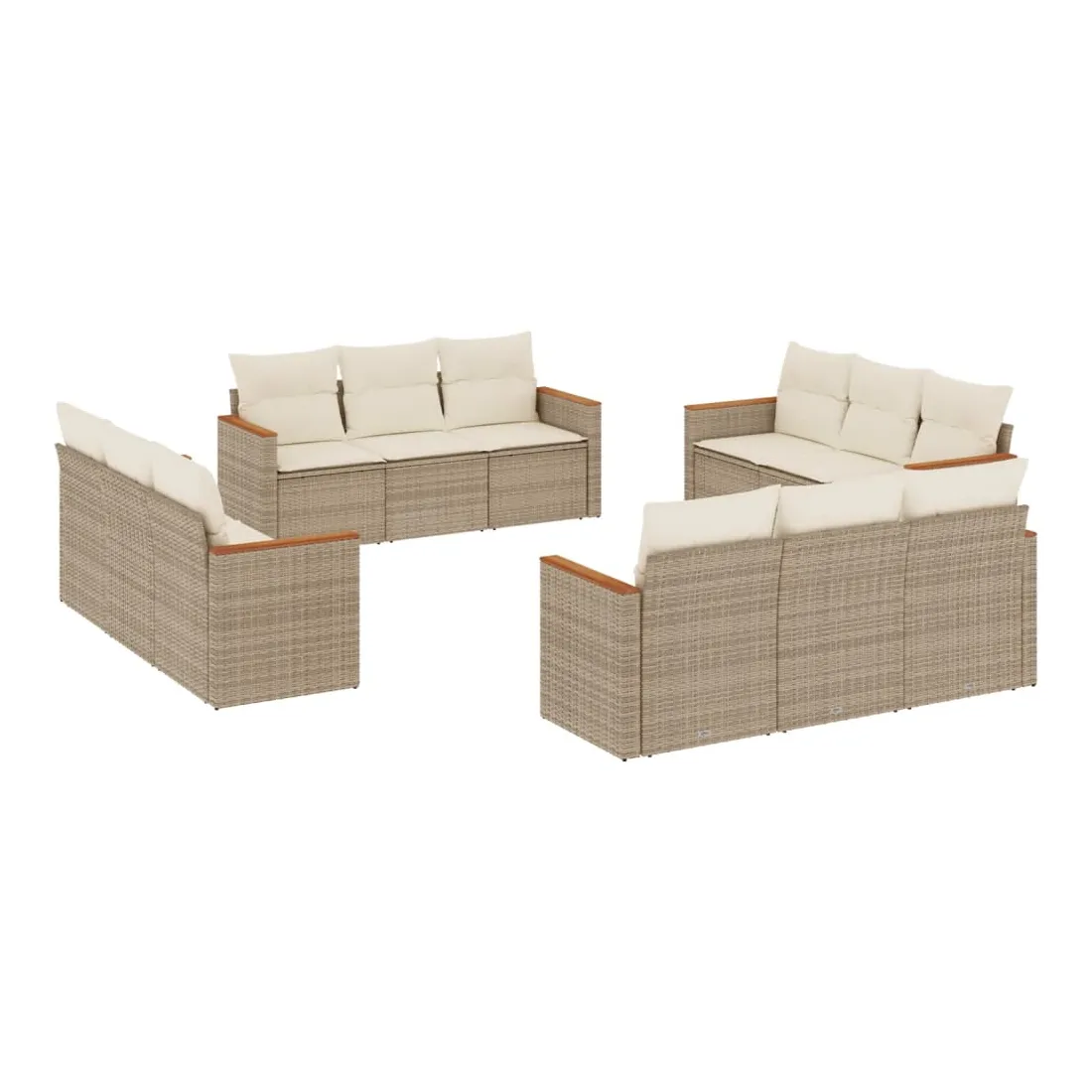 Cet ensemble de canapés de jardin est le complément parfait de votre arrière-cour, terrasse ou patio, offrant un espace confortable et accueillant pour discuter avec la famille et les amis ou simplement se détendre et profiter de l'extérieur. Matériau durable : la résine tressée, également connue sous le nom de poly rotin, est un matériau synthétique solide et nécessitant peu d'entretien qui ressemble au rotin naturel. Il est léger, facile à nettoyer et couramment utilisé pour les meubles d'extérieur en raison de sa durabilité et de ses propriétés de résistance aux intempéries.Housse amovible et lavable : ces coussins de siège sont dotés de housses amovibles pour un lavage et un entretien faciles.Cadre robuste et stable : le cadre en acier enduit de poudre assure la solidité et la stabilité du meuble de jardin pour une utilisation quotidienne à l'extérieur.Conception modulaire : cet ensemble de meubles d'extérieur a une conception modulaire, ce qui le rend complètement flexible et facile à déplacer, afin que vous puissiez créer un agencement de meubles d'extérieur personnalisé. Bon à savoir :Pour que vos meubles d'extérieur restent beaux, nous vous recommandons de les protéger avec une housse imperméable.