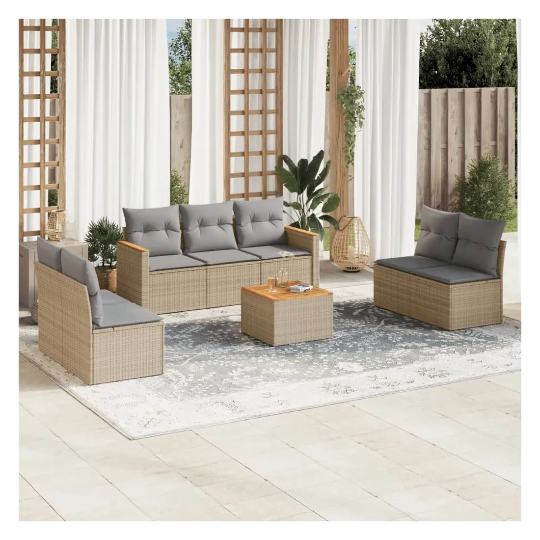 Cet ensemble de canapés de jardin est le complément parfait de votre arrière-cour, terrasse ou patio, offrant un espace confortable et accueillant pour discuter avec la famille et les amis ou simplement se détendre et profiter de l'extérieur. Matériau durable : la résine tressée, également connue sous le nom de poly rotin, est un matériau synthétique solide et nécessitant peu d'entretien qui ressemble au rotin naturel. Il est léger, facile à nettoyer et couramment utilisé pour les meubles d'extérieur en raison de sa durabilité et de ses propriétés de résistance aux intempéries.Dessus stable et facile à nettoyer : cette table de jardin a un dessus en bois d'acacia robuste, durable et facile à nettoyer avec un chiffon humide.Housse amovible et lavable : ces coussins de siège sont dotés de housses amovibles pour un lavage et un entretien faciles.Cadre robuste et stable : le cadre en acier enduit de poudre assure la solidité et la stabilité du meuble de jardin pour une utilisation quotidienne à l'extérieur.Conception modulaire : cet ensemble de meubles d'extérieur a une conception modulaire, ce qui le rend complètement flexible et facile à déplacer, afin que vous puissiez créer un agencement de meubles d'extérieur personnalisé. Bon à savoir :Pour que vos meubles d'extérieur restent beaux, nous vous recommandons de les protéger avec une housse imperméable.