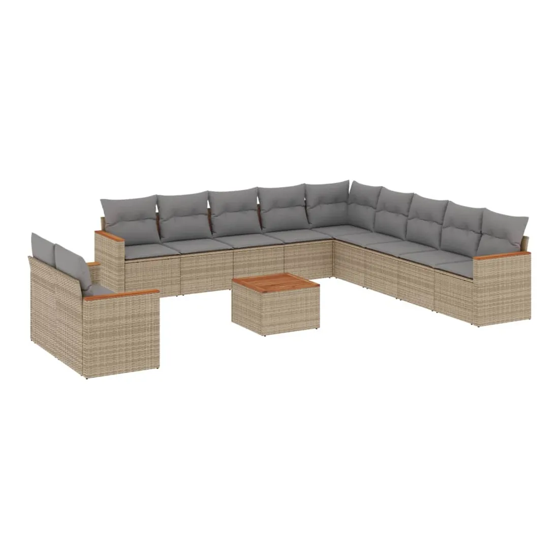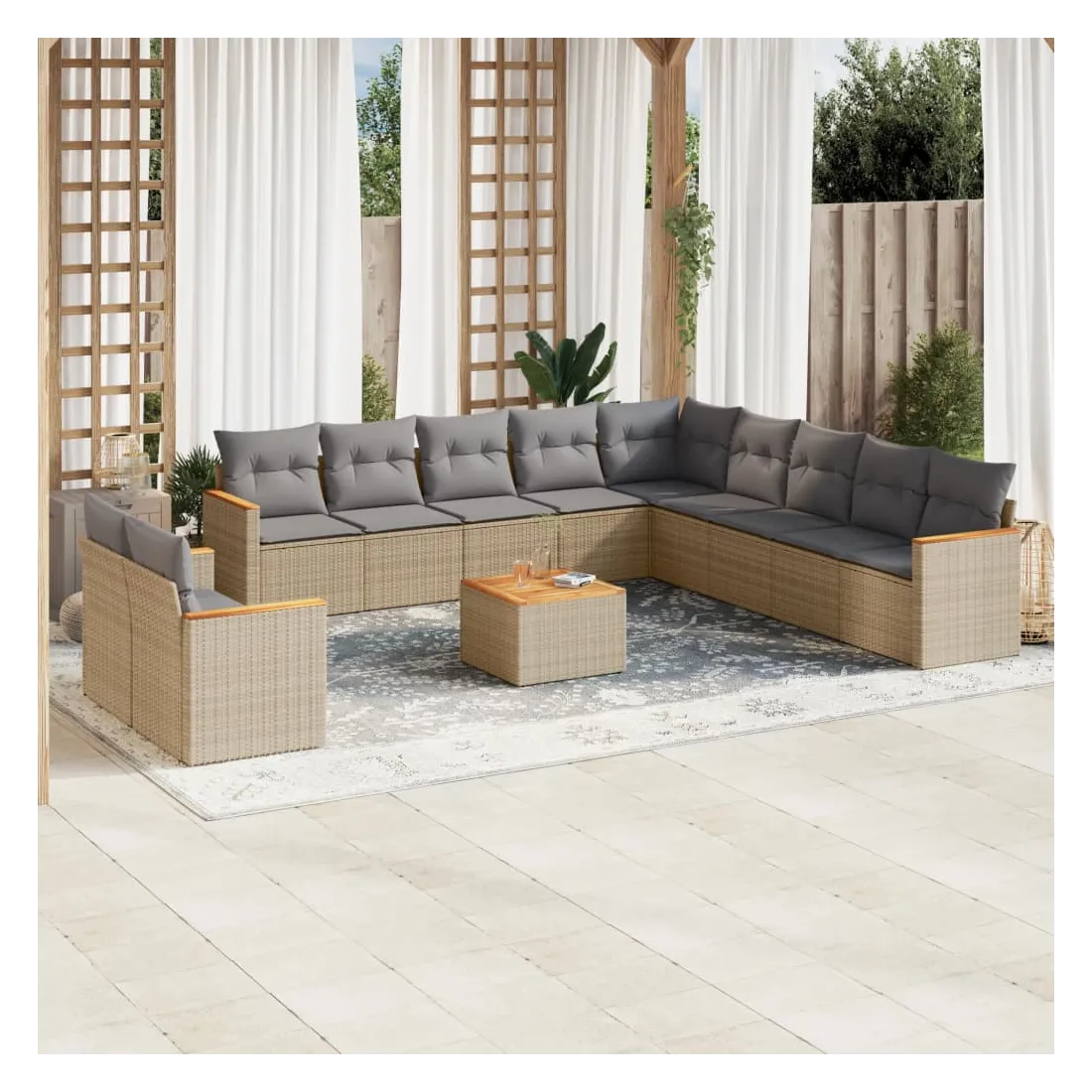 Salon de jardin et coussins 12 pcs mélange beige résine tressée