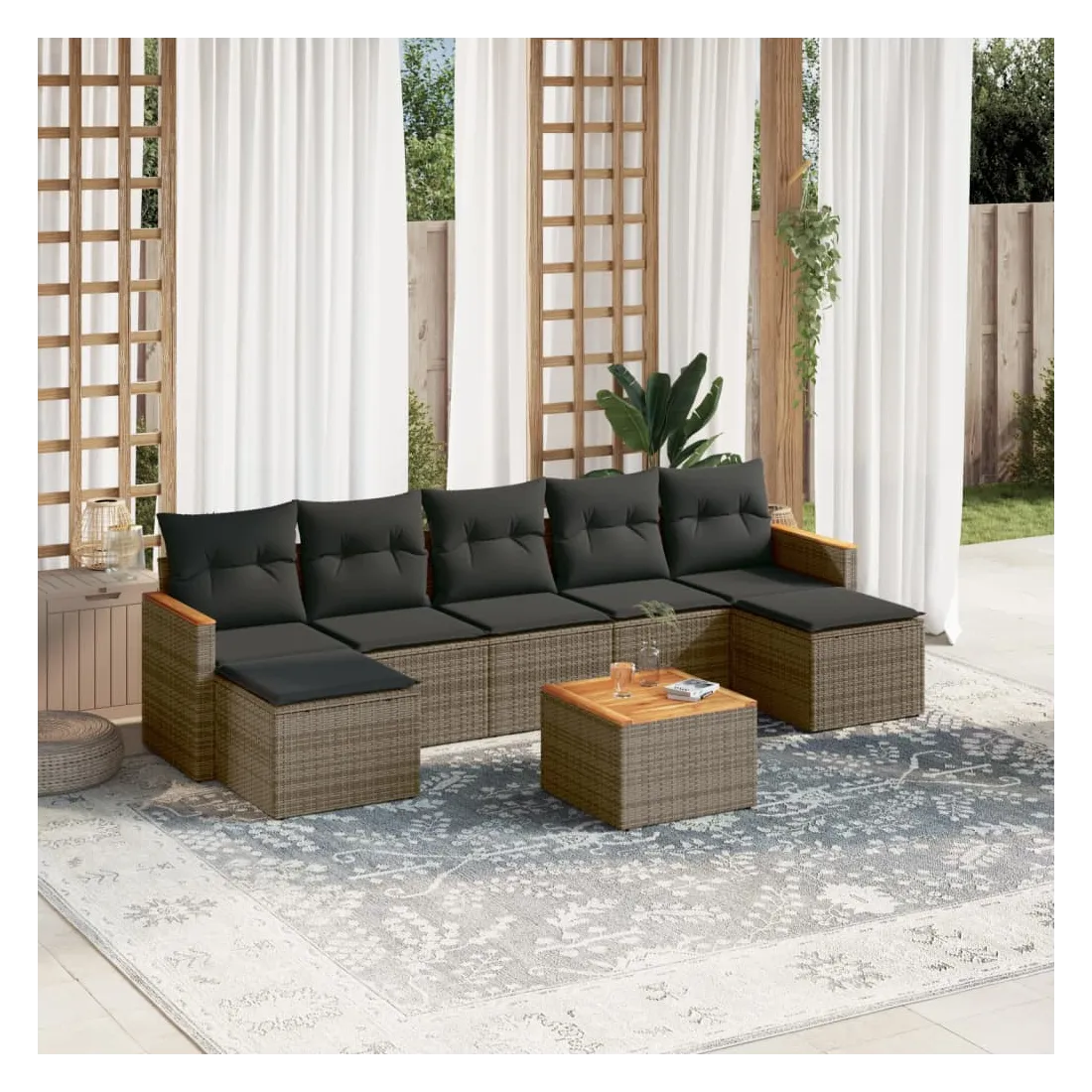 Cet ensemble de canapés de jardin est le complément parfait de votre arrière-cour, terrasse ou patio, offrant un espace confortable et accueillant pour discuter avec la famille et les amis ou simplement se détendre et profiter de l'extérieur. Matériau durable : la résine tressée, également connue sous le nom de poly rotin, est un matériau synthétique solide et nécessitant peu d'entretien qui ressemble au rotin naturel. Il est léger, facile à nettoyer et couramment utilisé pour les meubles d'extérieur en raison de sa durabilité et de ses propriétés de résistance aux intempéries.Dessus stable et facile à nettoyer : cette table de jardin a un dessus en bois d'acacia robuste, durable et facile à nettoyer avec un chiffon humide.Housse amovible et lavable : ces coussins de siège sont dotés de housses amovibles pour un lavage et un entretien faciles.Cadre robuste et stable : le cadre en acier enduit de poudre assure la solidité et la stabilité du meuble de jardin pour une utilisation quotidienne à l'extérieur.Conception modulaire : cet ensemble de meubles d'extérieur a une conception modulaire, ce qui le rend complètement flexible et facile à déplacer, afin que vous puissiez créer un agencement de meubles d'extérieur personnalisé. Bon à savoir :Pour que vos meubles d'extérieur restent beaux, nous vous recommandons de les protéger avec une housse imperméable.
