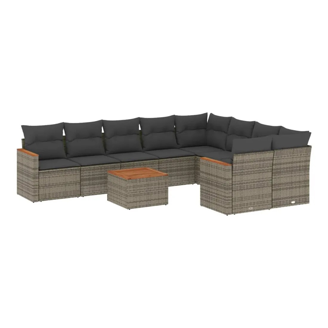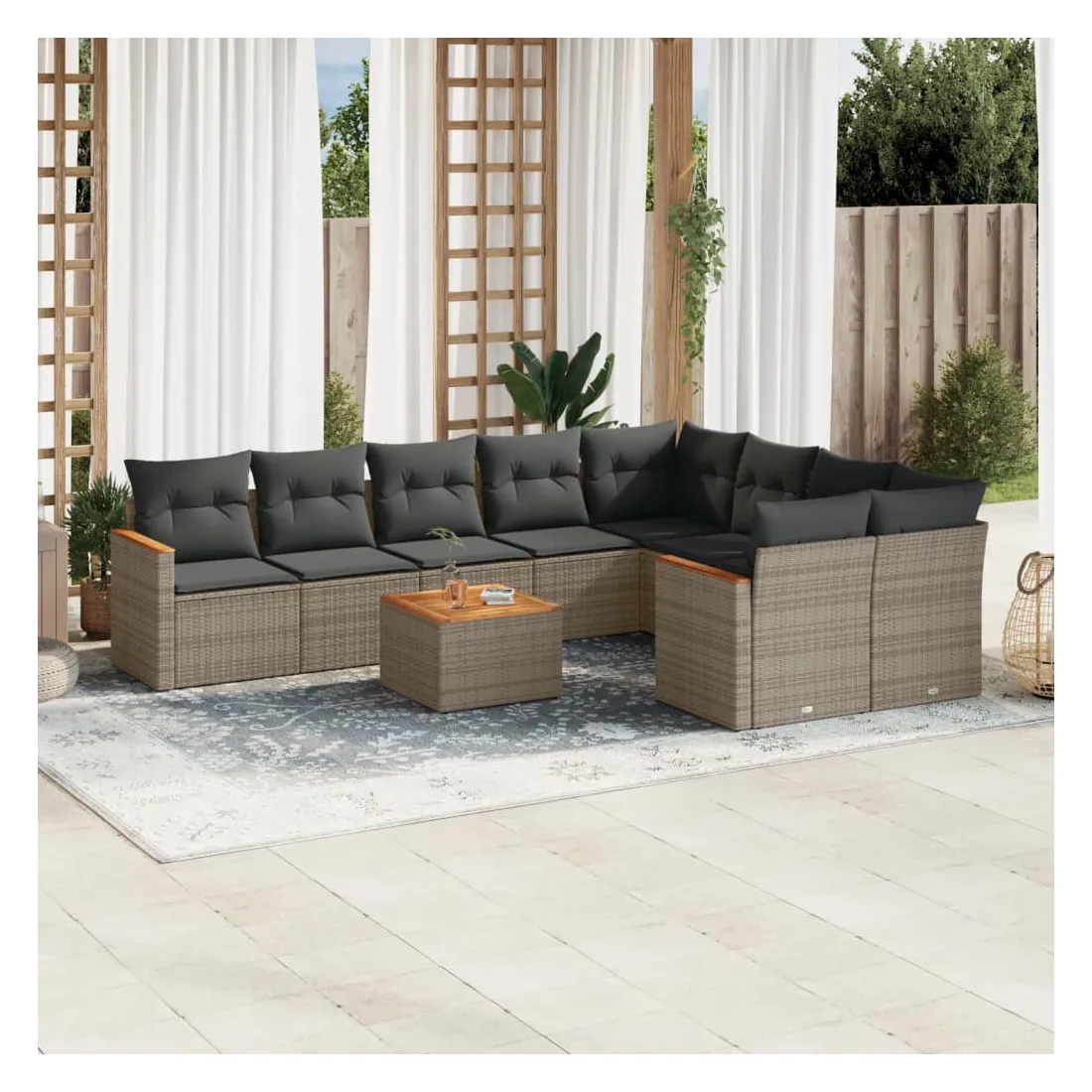 Cet ensemble de canapés de jardin est le complément parfait de votre arrière-cour, terrasse ou patio, offrant un espace confortable et accueillant pour discuter avec la famille et les amis ou simplement se détendre et profiter de l'extérieur. Matériau durable : la résine tressée, également connue sous le nom de poly rotin, est un matériau synthétique solide et nécessitant peu d'entretien qui ressemble au rotin naturel. Il est léger, facile à nettoyer et couramment utilisé pour les meubles d'extérieur en raison de sa durabilité et de ses propriétés de résistance aux intempéries.Dessus stable et facile à nettoyer : cette table de jardin a un dessus en bois d'acacia robuste, durable et facile à nettoyer avec un chiffon humide.Housse amovible et lavable : ces coussins de siège sont dotés de housses amovibles pour un lavage et un entretien faciles.Cadre robuste et stable : le cadre en acier enduit de poudre assure la solidité et la stabilité du meuble de jardin pour une utilisation quotidienne à l'extérieur.Conception modulaire : cet ensemble de meubles d'extérieur a une conception modulaire, ce qui le rend complètement flexible et facile à déplacer, afin que vous puissiez créer un agencement de meubles d'extérieur personnalisé. Bon à savoir :Pour que vos meubles d'extérieur restent beaux, nous vous recommandons de les protéger avec une housse imperméable.