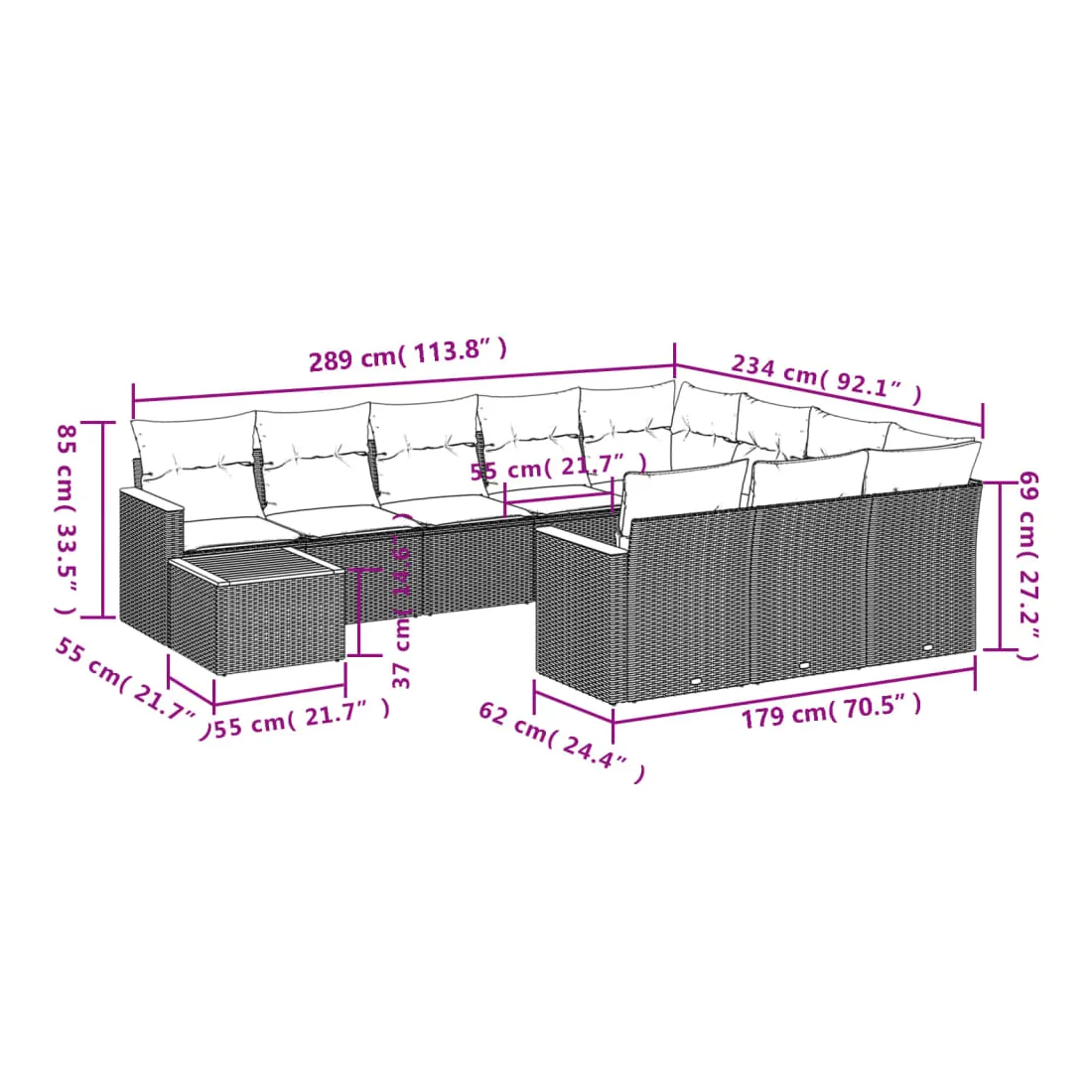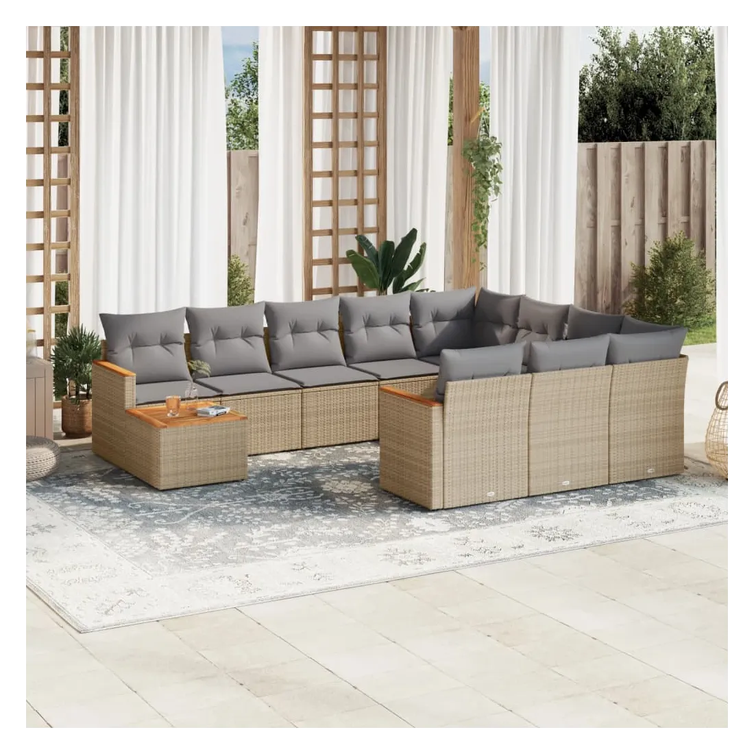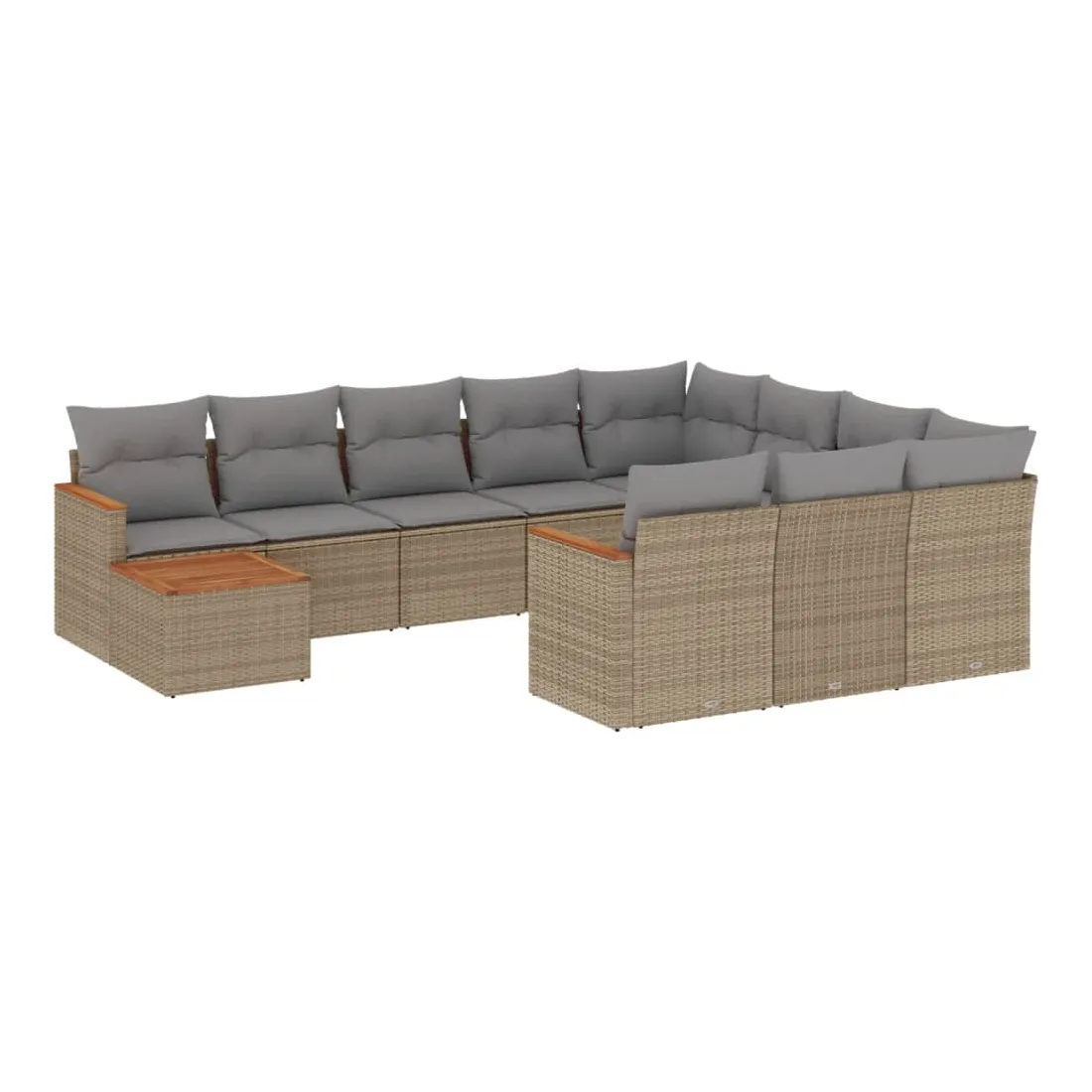 Salon de jardin et coussins 11 pcs mélange beige résine tressée
