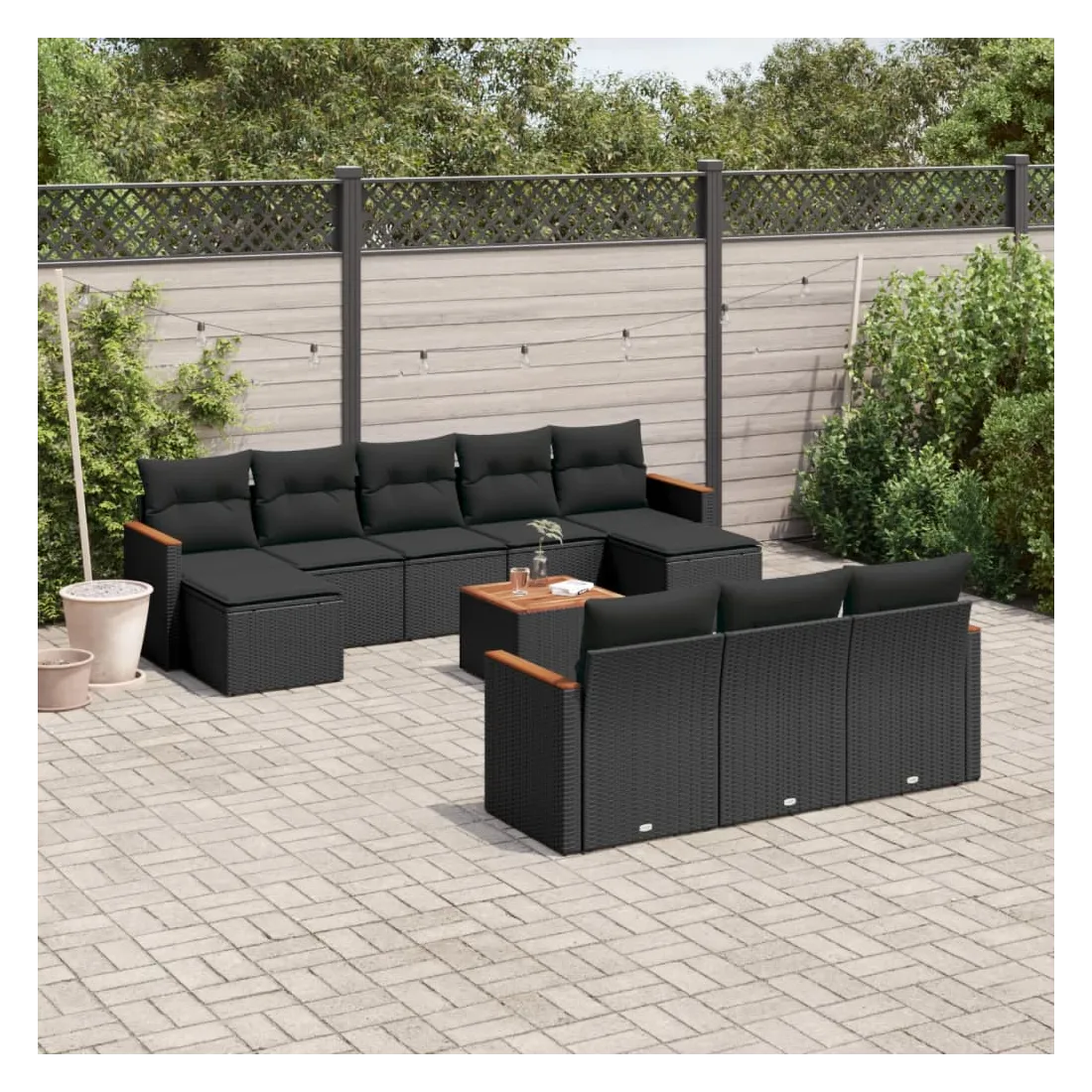 Cet ensemble de canapés de jardin est le complément parfait de votre arrière-cour, terrasse ou patio, offrant un espace confortable et accueillant pour discuter avec la famille et les amis ou simplement se détendre et profiter de l'extérieur. Matériau durable : la résine tressée, également connue sous le nom de poly rotin, est un matériau synthétique solide et nécessitant peu d'entretien qui ressemble au rotin naturel. Il est léger, facile à nettoyer et couramment utilisé pour les meubles d'extérieur en raison de sa durabilité et de ses propriétés de résistance aux intempéries.Dessus stable et facile à nettoyer : cette table de jardin a un dessus en bois d'acacia robuste, durable et facile à nettoyer avec un chiffon humide.Housse amovible et lavable : ces coussins de siège sont dotés de housses amovibles pour un lavage et un entretien faciles.Cadre robuste et stable : le cadre en acier enduit de poudre assure la solidité et la stabilité du meuble de jardin pour une utilisation quotidienne à l'extérieur.Conception modulaire : cet ensemble de meubles d'extérieur a une conception modulaire, ce qui le rend complètement flexible et facile à déplacer, afin que vous puissiez créer un agencement de meubles d'extérieur personnalisé. Bon à savoir :Pour que vos meubles d'extérieur restent beaux, nous vous recommandons de les protéger avec une housse imperméable.