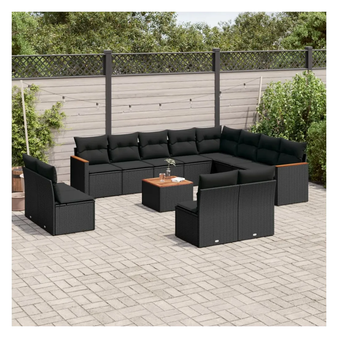 Cet ensemble de canapés de jardin est le complément parfait de votre arrière-cour, terrasse ou patio, offrant un espace confortable et accueillant pour discuter avec la famille et les amis ou simplement se détendre et profiter de l'extérieur. Matériau durable : la résine tressée, également connue sous le nom de poly rotin, est un matériau synthétique solide et nécessitant peu d'entretien qui ressemble au rotin naturel. Il est léger, facile à nettoyer et couramment utilisé pour les meubles d'extérieur en raison de sa durabilité et de ses propriétés de résistance aux intempéries.Dessus stable et facile à nettoyer : cette table de jardin a un dessus en bois d'acacia robuste, durable et facile à nettoyer avec un chiffon humide.Housse amovible et lavable : ces coussins de siège sont dotés de housses amovibles pour un lavage et un entretien faciles.Cadre robuste et stable : le cadre en acier enduit de poudre assure la solidité et la stabilité du meuble de jardin pour une utilisation quotidienne à l'extérieur.Conception modulaire : cet ensemble de meubles d'extérieur a une conception modulaire, ce qui le rend complètement flexible et facile à déplacer, afin que vous puissiez créer un agencement de meubles d'extérieur personnalisé. Bon à savoir :Pour que vos meubles d'extérieur restent beaux, nous vous recommandons de les protéger avec une housse imperméable.