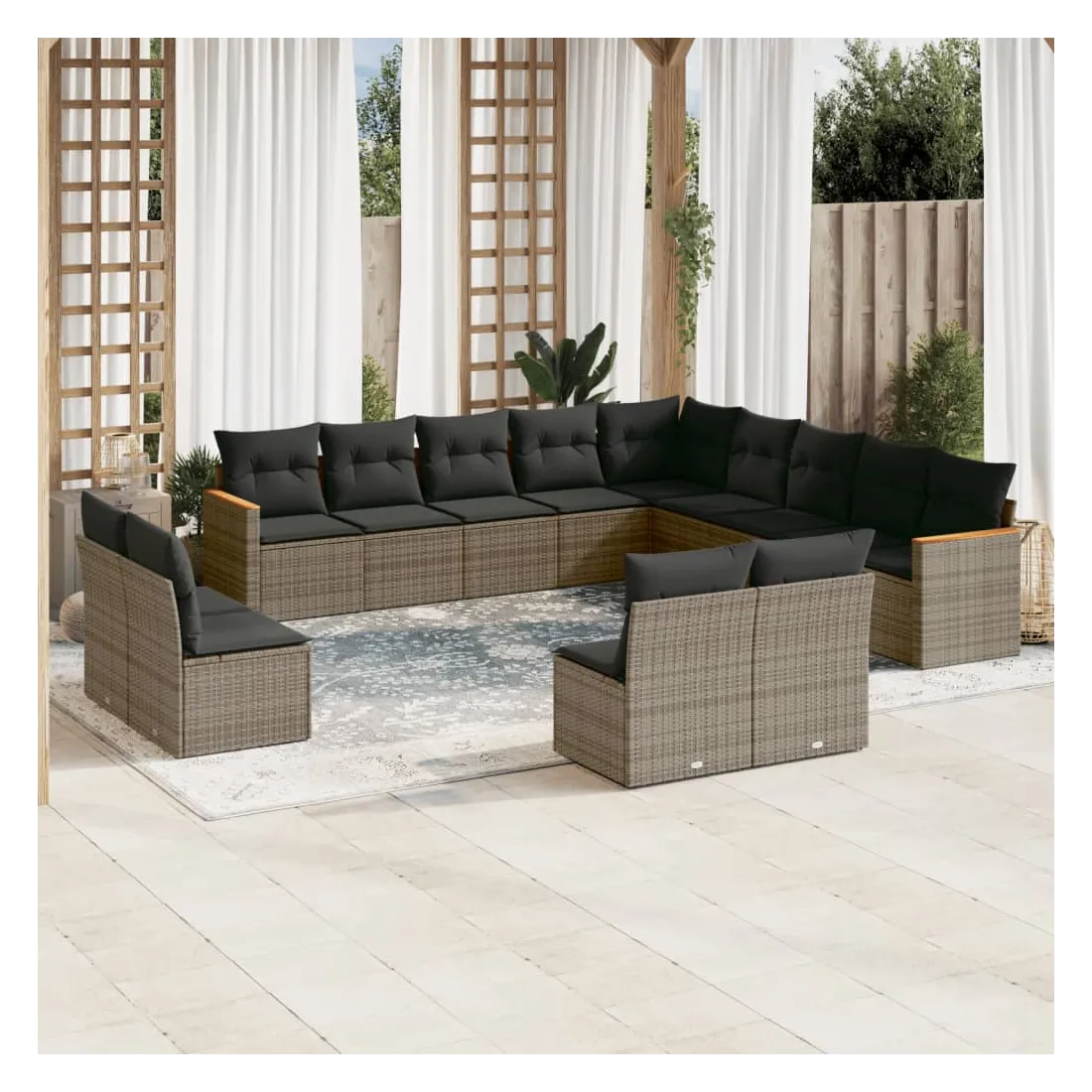 Cet ensemble de canapés de jardin est le complément parfait de votre arrière-cour, terrasse ou patio, offrant un espace confortable et accueillant pour discuter avec la famille et les amis ou simplement se détendre et profiter de l'extérieur. Matériau durable : la résine tressée, également connue sous le nom de poly rotin, est un matériau synthétique solide et nécessitant peu d'entretien qui ressemble au rotin naturel. Il est léger, facile à nettoyer et couramment utilisé pour les meubles d'extérieur en raison de sa durabilité et de ses propriétés de résistance aux intempéries.Housse amovible et lavable : ces coussins de siège sont dotés de housses amovibles pour un lavage et un entretien faciles.Cadre robuste et stable : le cadre en acier enduit de poudre assure la solidité et la stabilité du meuble de jardin pour une utilisation quotidienne à l'extérieur.Conception modulaire : cet ensemble de meubles d'extérieur a une conception modulaire, ce qui le rend complètement flexible et facile à déplacer, afin que vous puissiez créer un agencement de meubles d'extérieur personnalisé. Bon à savoir :Pour que vos meubles d'extérieur restent beaux, nous vous recommandons de les protéger avec une housse imperméable.