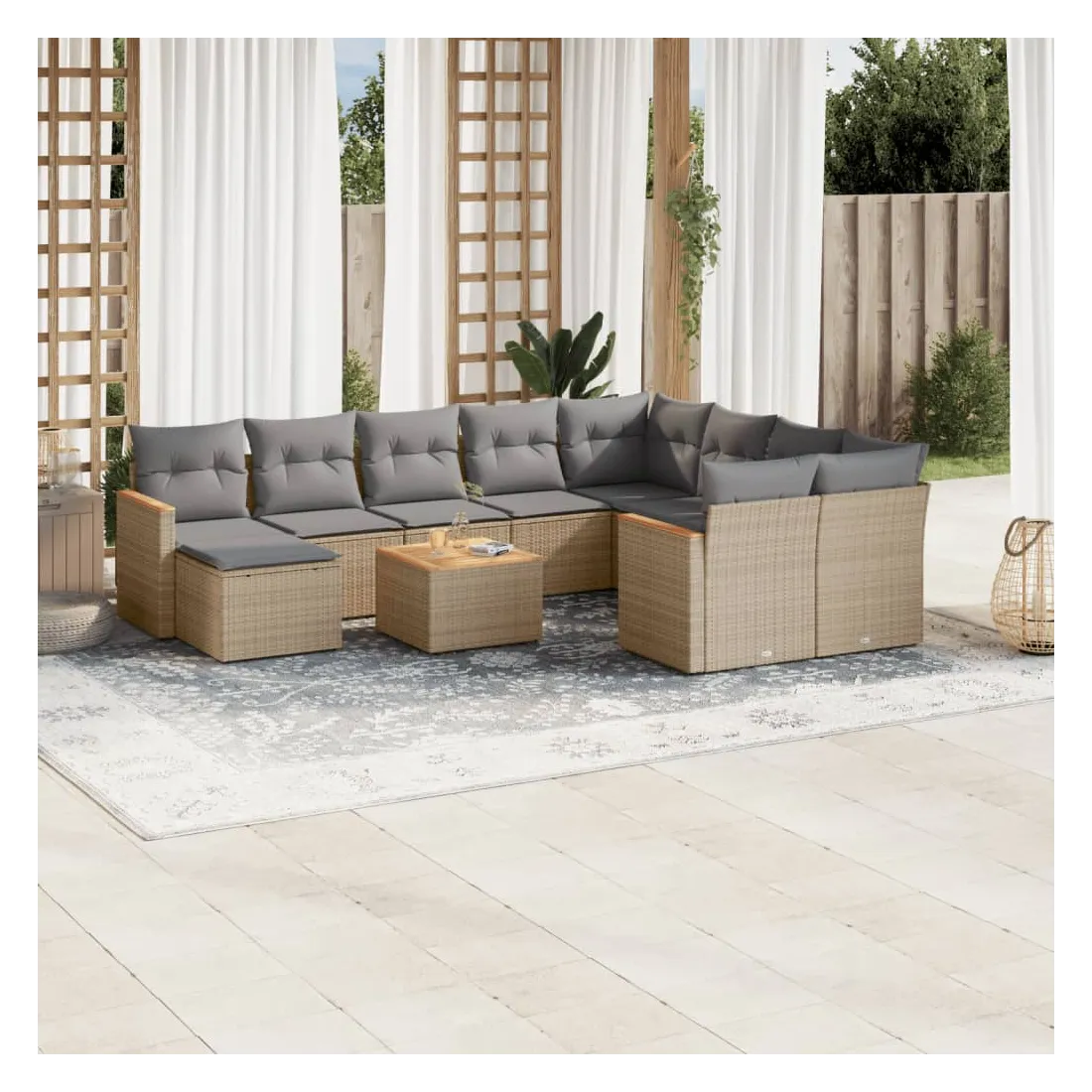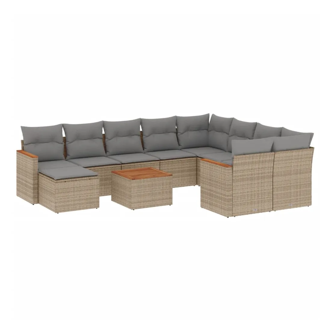 Salon de jardin et coussins 11 pcs mélange beige résine tressée