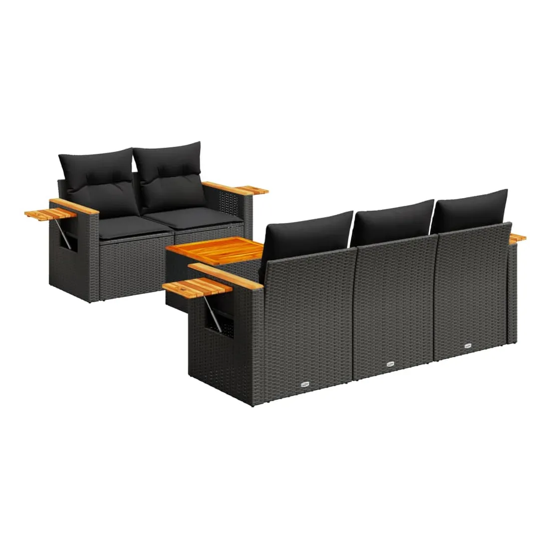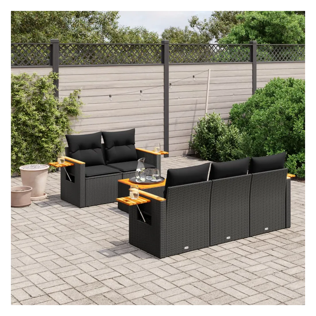 Cet ensemble de canapés de jardin est le complément parfait de votre arrière-cour, terrasse ou patio, offrant un espace confortable et accueillant pour discuter avec la famille et les amis ou simplement se détendre et profiter de l'extérieur. Matériau durable : la résine tressée, également connue sous le nom de poly rotin, est un matériau synthétique solide et nécessitant peu d'entretien qui ressemble au rotin naturel. Il est léger, facile à nettoyer et couramment utilisé pour les meubles d'extérieur en raison de sa durabilité et de ses propriétés de résistance aux intempéries.Dessus stable et facile à nettoyer : cette table de jardin a un dessus en bois d'acacia robuste, durable et facile à nettoyer avec un chiffon humide.Table d'appoint pratique : ce mobilier d'extérieur comprend une table d'appoint pliable avec un ressort à gaz sur les accoudoirs, offrant un endroit pratique pour garder vos essentiels à portée de main.Housse amovible et lavable : ces coussins de siège sont dotés de housses amovibles pour un lavage et un entretien faciles.Conception modulaire : cet ensemble de meubles d'extérieur a une conception modulaire, ce qui le rend complètement flexible et facile à déplacer, afin que vous puissiez créer un agencement de meubles d'extérieur personnalisé. Bon à savoir :Pour que vos meubles d'extérieur restent beaux, nous vous recommandons de les protéger avec une housse imperméable.