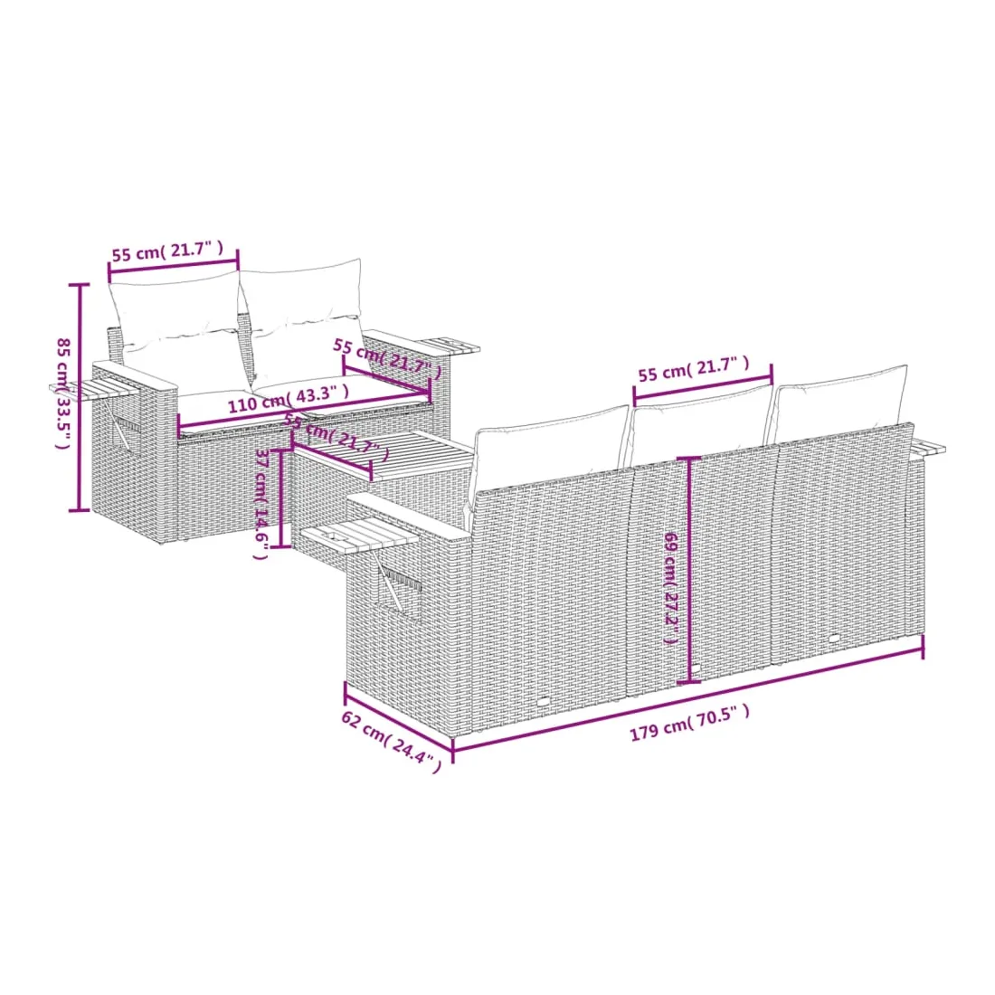 - Dimensions : 55 x 55 x 37 cm (L x l x H)