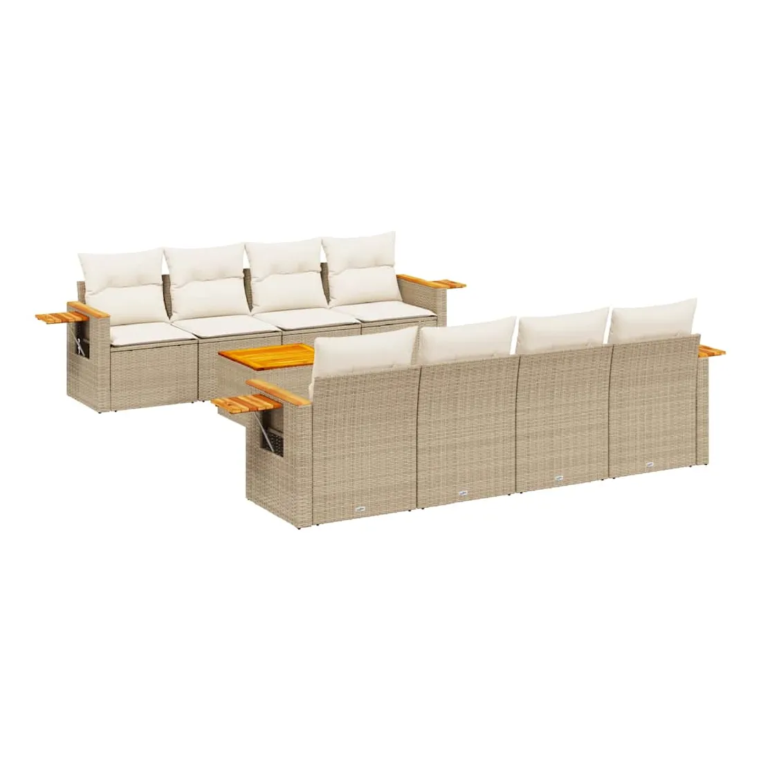 Cet ensemble de canapés de jardin est le complément parfait de votre arrière-cour, terrasse ou patio, offrant un espace confortable et accueillant pour discuter avec la famille et les amis ou simplement se détendre et profiter de l'extérieur. Matériau durable : la résine tressée, également connue sous le nom de poly rotin, est un matériau synthétique solide et nécessitant peu d'entretien qui ressemble au rotin naturel. Il est léger, facile à nettoyer et couramment utilisé pour les meubles d'extérieur en raison de sa durabilité et de ses propriétés de résistance aux intempéries.Dessus stable et facile à nettoyer : cette table de jardin a un dessus en bois d'acacia robuste, durable et facile à nettoyer avec un chiffon humide.Table d'appoint pratique : ce mobilier d'extérieur comprend une table d'appoint pliable avec un ressort à gaz sur les accoudoirs, offrant un endroit pratique pour garder vos essentiels à portée de main.Housse amovible et lavable : ces coussins de siège sont dotés de housses amovibles pour un lavage et un entretien faciles.Conception modulaire : cet ensemble de meubles d'extérieur a une conception modulaire, ce qui le rend complètement flexible et facile à déplacer, afin que vous puissiez créer un agencement de meubles d'extérieur personnalisé. Bon à savoir :Pour que vos meubles d'extérieur restent beaux, nous vous recommandons de les protéger avec une housse imperméable.