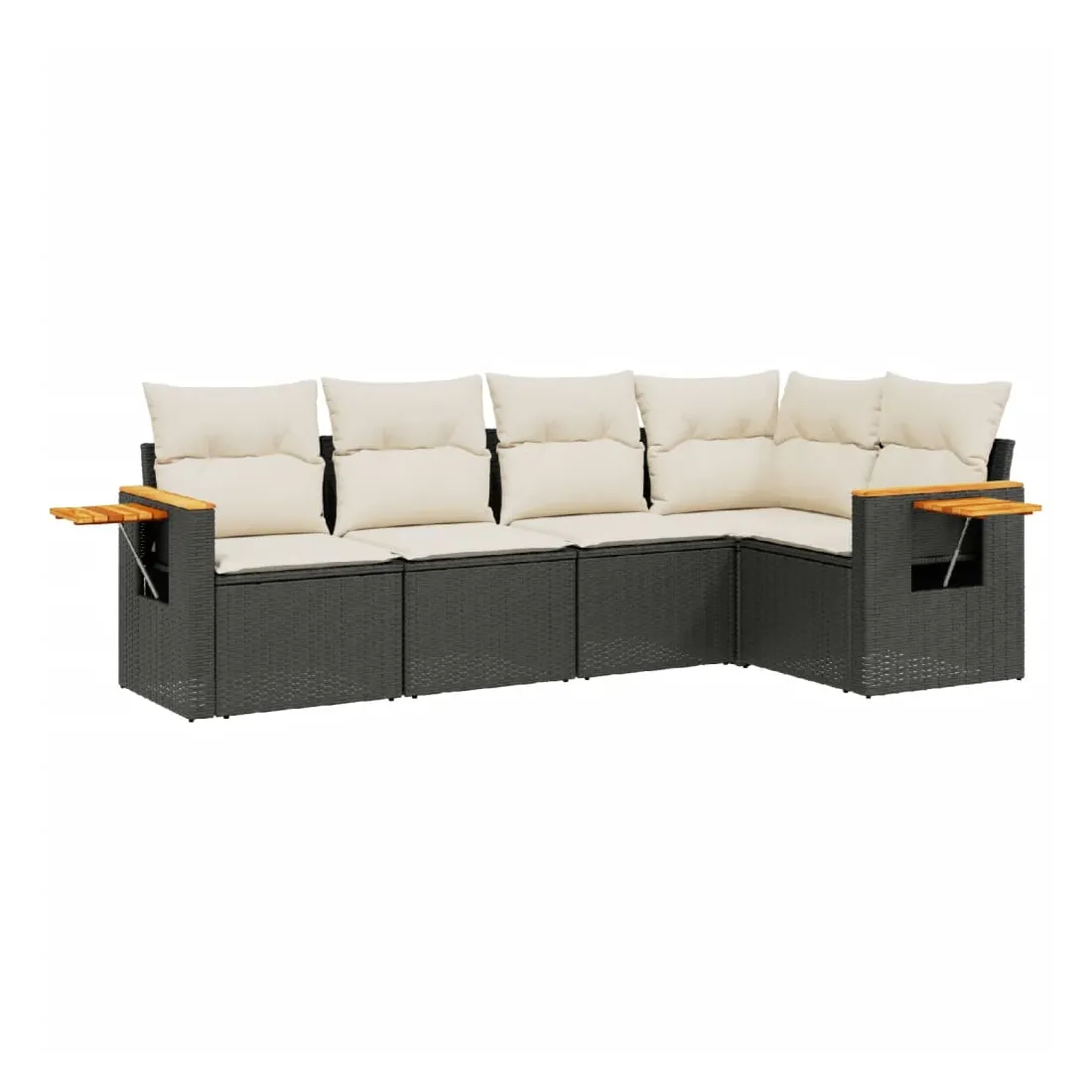 Salon de jardin 5 pcs avec coussins noir résine tressée