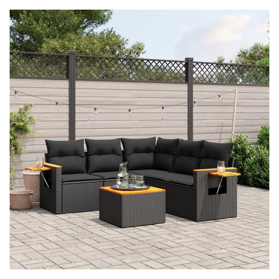 Salon de jardin 6 pcs avec coussins noir résine tressée