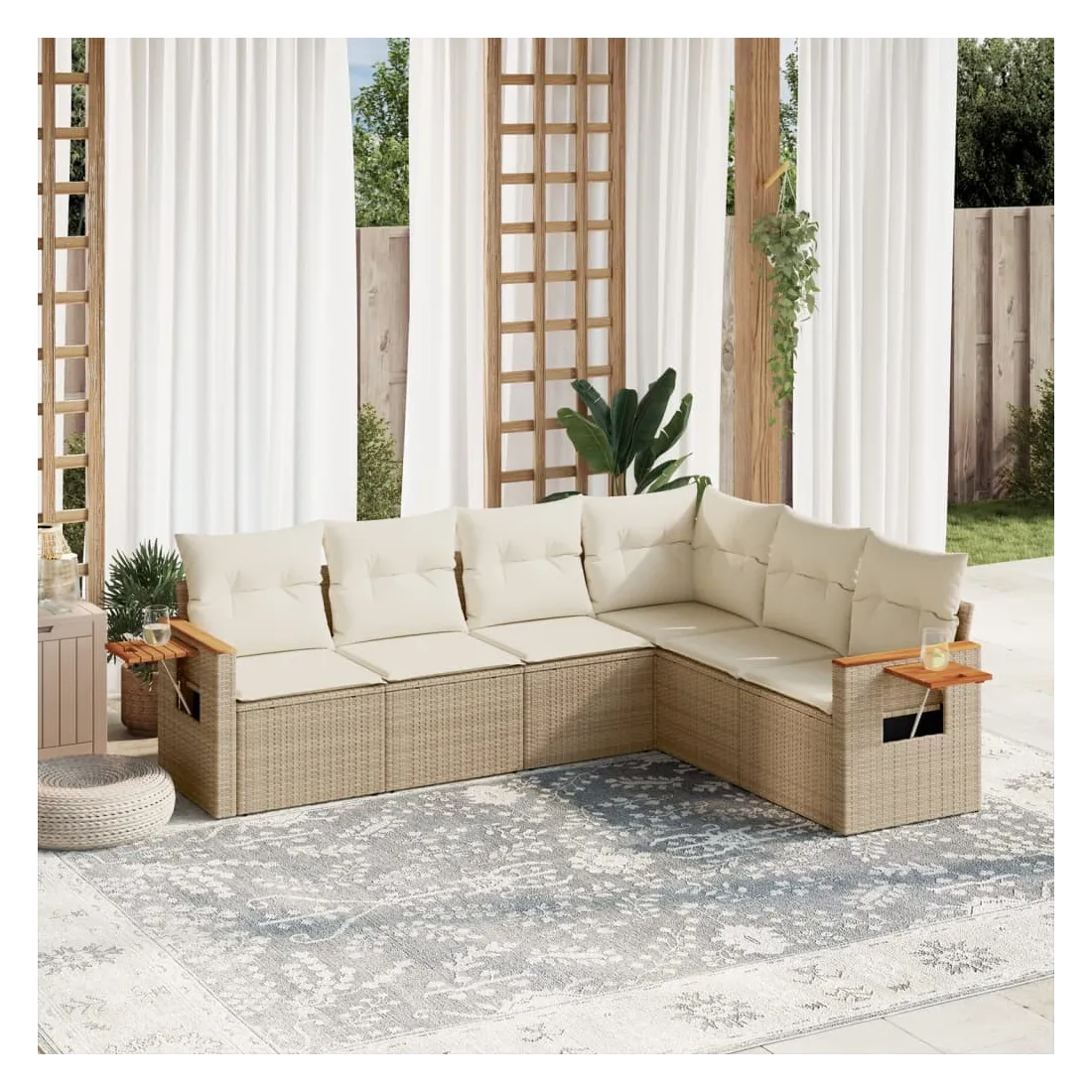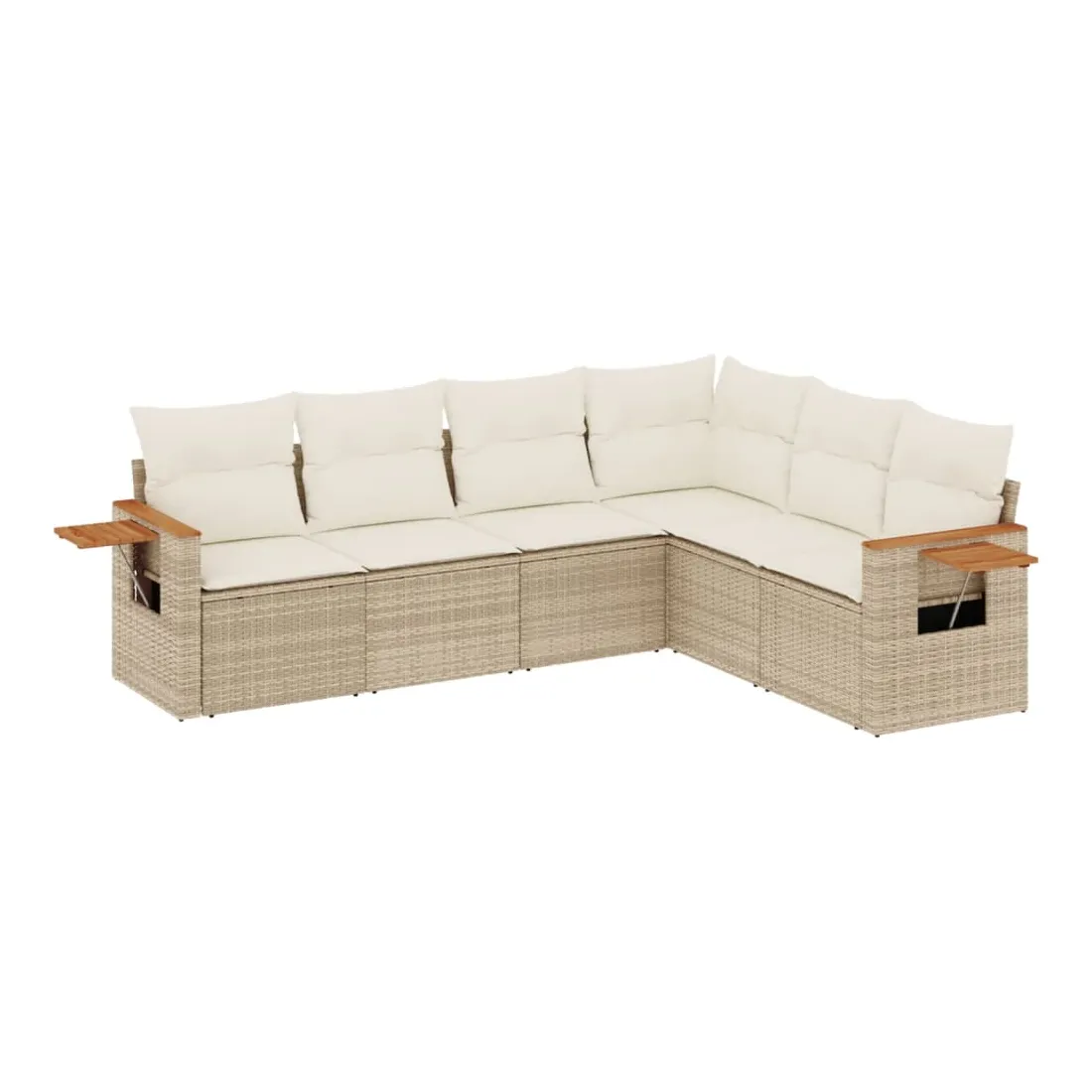 Salon de jardin avec coussins 6 pcs beige résine tressée