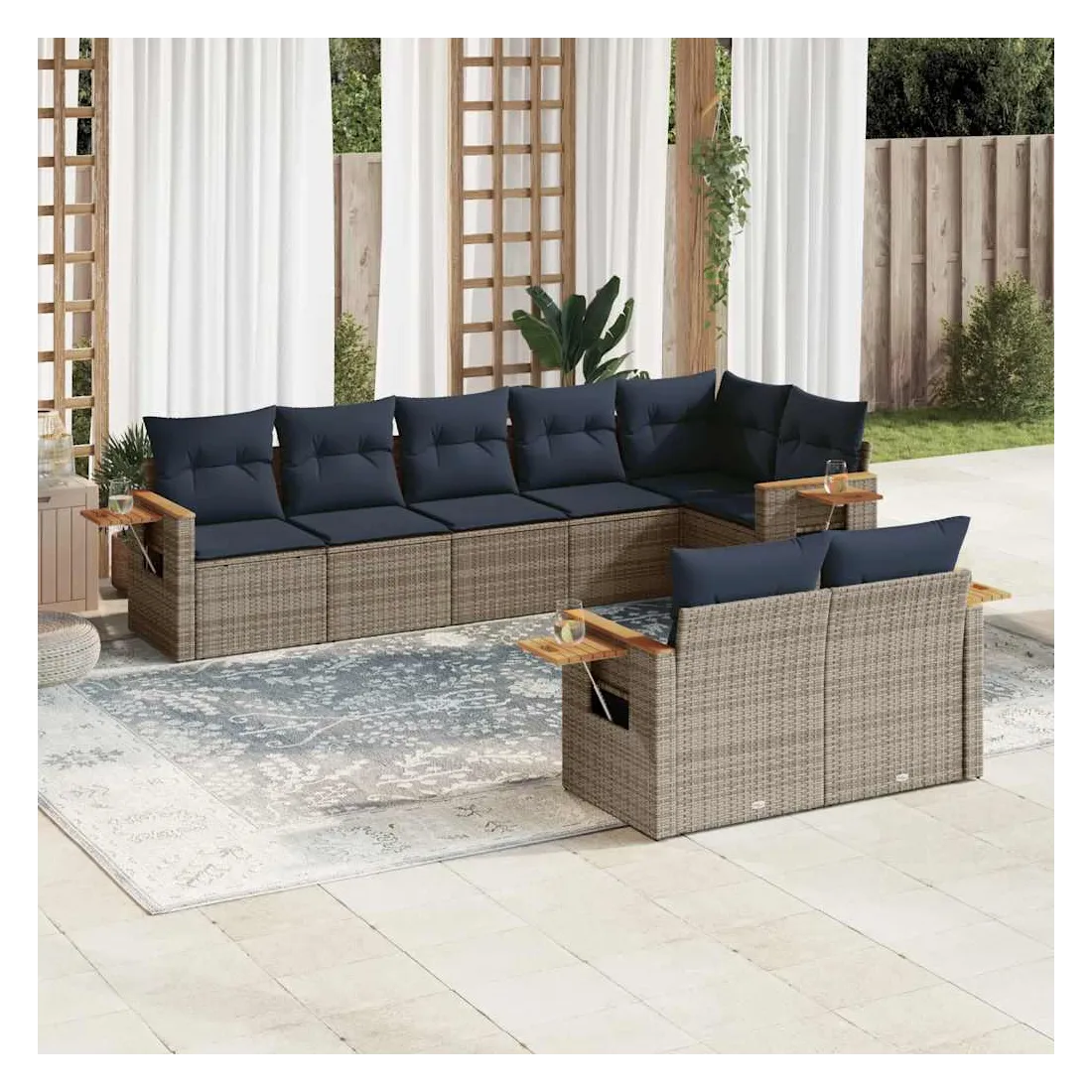 Cet ensemble de canapés de jardin est le complément parfait de votre arrière-cour, terrasse ou patio, offrant un espace confortable et accueillant pour discuter avec la famille et les amis ou simplement se détendre et profiter de l'extérieur. Matériau durable : la résine tressée, également connue sous le nom de poly rotin, est un matériau synthétique solide et nécessitant peu d'entretien qui ressemble au rotin naturel. Il est léger, facile à nettoyer et couramment utilisé pour les meubles d'extérieur en raison de sa durabilité et de ses propriétés de résistance aux intempéries.Table d'appoint pratique : ce mobilier d'extérieur comprend une table d'appoint pliable avec un ressort à gaz sur les accoudoirs, offrant un endroit pratique pour garder vos essentiels à portée de main.Housse amovible et lavable : ces coussins de siège sont dotés de housses amovibles pour un lavage et un entretien faciles.Conception modulaire : cet ensemble de meubles d'extérieur a une conception modulaire, ce qui le rend complètement flexible et facile à déplacer, afin que vous puissiez créer un agencement de meubles d'extérieur personnalisé. Bon à savoir :Pour que vos meubles d'extérieur restent beaux, nous vous recommandons de les protéger avec une housse imperméable.