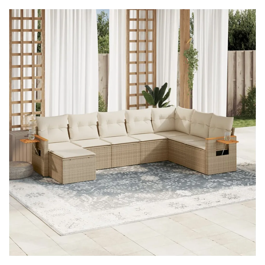 Cet ensemble de canapés de jardin est le complément parfait de votre arrière-cour, terrasse ou patio, offrant un espace confortable et accueillant pour discuter avec la famille et les amis ou simplement se détendre et profiter de l'extérieur. Matériau durable : la résine tressée, également connue sous le nom de poly rotin, est un matériau synthétique solide et nécessitant peu d'entretien qui ressemble au rotin naturel. Il est léger, facile à nettoyer et couramment utilisé pour les meubles d'extérieur en raison de sa durabilité et de ses propriétés de résistance aux intempéries.Table d'appoint pratique : ce mobilier d'extérieur comprend une table d'appoint pliable avec un ressort à gaz sur les accoudoirs, offrant un endroit pratique pour garder vos essentiels à portée de main.Housse amovible et lavable : ces coussins de siège sont dotés de housses amovibles pour un lavage et un entretien faciles.Conception modulaire : cet ensemble de meubles d'extérieur a une conception modulaire, ce qui le rend complètement flexible et facile à déplacer, afin que vous puissiez créer un agencement de meubles d'extérieur personnalisé. Bon à savoir :Pour que vos meubles d'extérieur restent beaux, nous vous recommandons de les protéger avec une housse imperméable.