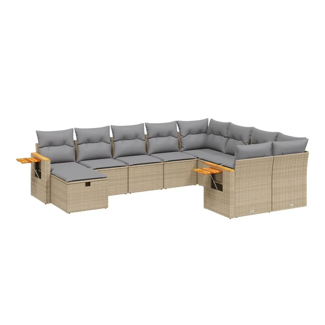 Cet ensemble de canapés de jardin est le complément parfait de votre arrière-cour, terrasse ou patio, offrant un espace confortable et accueillant pour discuter avec la famille et les amis ou simplement se détendre et profiter de l'extérieur. Matériau durable : la résine tressée, également connue sous le nom de poly rotin, est un matériau synthétique solide et nécessitant peu d'entretien qui ressemble au rotin naturel. Il est léger, facile à nettoyer et couramment utilisé pour les meubles d'extérieur en raison de sa durabilité et de ses propriétés de résistance aux intempéries.Dessus stable et facile à nettoyer : cette table de jardin a un dessus en bois d'acacia robuste, durable et facile à nettoyer avec un chiffon humide.Table d'appoint pratique : ce mobilier d'extérieur comprend une table d'appoint pliable avec un ressort à gaz sur les accoudoirs, offrant un endroit pratique pour garder vos essentiels à portée de main.Housse amovible et lavable : ces coussins de siège sont dotés de housses amovibles pour un lavage et un entretien faciles.Conception modulaire : cet ensemble de meubles d'extérieur a une conception modulaire, ce qui le rend complètement flexible et facile à déplacer, afin que vous puissiez créer un agencement de meubles d'extérieur personnalisé. Bon à savoir :Pour que vos meubles d'extérieur restent beaux, nous vous recommandons de les protéger avec une housse imperméable.