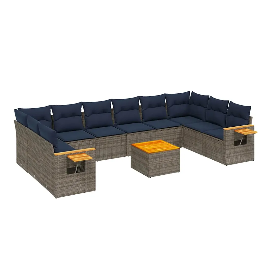 Cet ensemble de canapés de jardin est le complément parfait de votre arrière-cour, terrasse ou patio, offrant un espace confortable et accueillant pour discuter avec la famille et les amis ou simplement se détendre et profiter de l'extérieur. Matériau durable : la résine tressée, également connue sous le nom de poly rotin, est un matériau synthétique solide et nécessitant peu d'entretien qui ressemble au rotin naturel. Il est léger, facile à nettoyer et couramment utilisé pour les meubles d'extérieur en raison de sa durabilité et de ses propriétés de résistance aux intempéries.Dessus stable et facile à nettoyer : cette table de jardin a un dessus en bois d'acacia robuste, durable et facile à nettoyer avec un chiffon humide.Table d'appoint pratique : ce mobilier d'extérieur comprend une table d'appoint pliable avec un ressort à gaz sur les accoudoirs, offrant un endroit pratique pour garder vos essentiels à portée de main.Housse amovible et lavable : ces coussins de siège sont dotés de housses amovibles pour un lavage et un entretien faciles.Conception modulaire : cet ensemble de meubles d'extérieur a une conception modulaire, ce qui le rend complètement flexible et facile à déplacer, afin que vous puissiez créer un agencement de meubles d'extérieur personnalisé. Bon à savoir :Pour que vos meubles d'extérieur restent beaux, nous vous recommandons de les protéger avec une housse imperméable.
