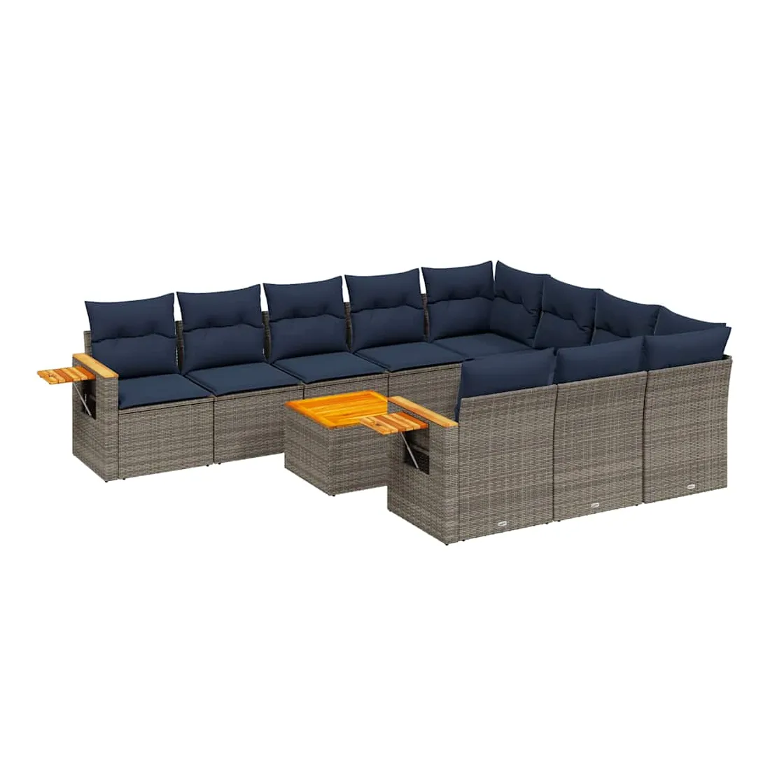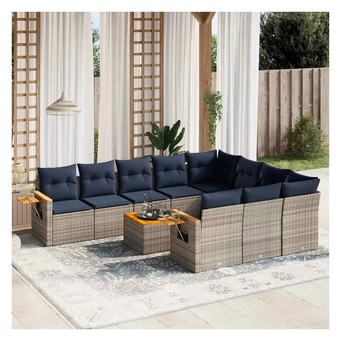 Cet ensemble de canapés de jardin est le complément parfait de votre arrière-cour, terrasse ou patio, offrant un espace confortable et accueillant pour discuter avec la famille et les amis ou simplement se détendre et profiter de l'extérieur. Matériau durable : la résine tressée, également connue sous le nom de poly rotin, est un matériau synthétique solide et nécessitant peu d'entretien qui ressemble au rotin naturel. Il est léger, facile à nettoyer et couramment utilisé pour les meubles d'extérieur en raison de sa durabilité et de ses propriétés de résistance aux intempéries.Dessus stable et facile à nettoyer : cette table de jardin a un dessus en bois d'acacia robuste, durable et facile à nettoyer avec un chiffon humide.Table d'appoint pratique : ce mobilier d'extérieur comprend une table d'appoint pliable avec un ressort à gaz sur les accoudoirs, offrant un endroit pratique pour garder vos essentiels à portée de main.Housse amovible et lavable : ces coussins de siège sont dotés de housses amovibles pour un lavage et un entretien faciles.Conception modulaire : cet ensemble de meubles d'extérieur a une conception modulaire, ce qui le rend complètement flexible et facile à déplacer, afin que vous puissiez créer un agencement de meubles d'extérieur personnalisé. Bon à savoir :Pour que vos meubles d'extérieur restent beaux, nous vous recommandons de les protéger avec une housse imperméable.