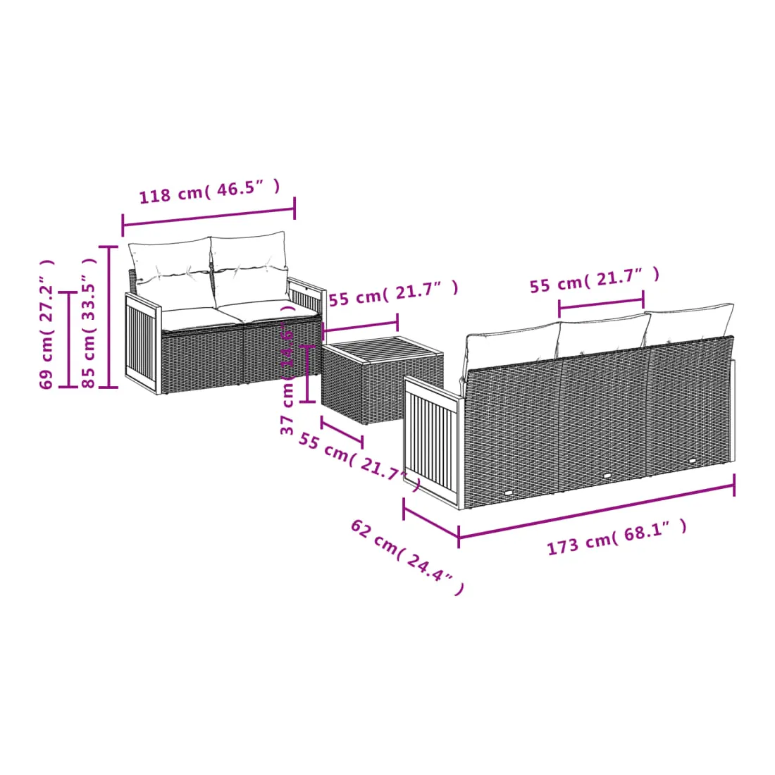 - Dimensions : 55 x 55 x 37 cm (L x l x H)