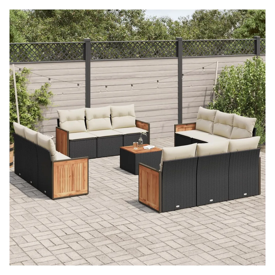 Cet ensemble de canapés de jardin est le complément parfait de votre arrière-cour, terrasse ou patio, offrant un espace confortable et accueillant pour discuter avec la famille et les amis ou simplement se détendre et profiter de l'extérieur. Matériau durable : la résine tressée, également connue sous le nom de poly rotin, est un matériau synthétique solide et nécessitant peu d'entretien qui ressemble au rotin naturel. Il est léger, facile à nettoyer et couramment utilisé pour les meubles d'extérieur en raison de sa durabilité et de ses propriétés de résistance aux intempéries.Expérience d'assise confortable : ce mobilier d'extérieur, doté de coussins épais, offre une expérience d'assise confortable.Dessus stable et facile à nettoyer : cette table de jardin a un dessus en bois d'acacia robuste, durable et facile à nettoyer avec un chiffon humide.Housse amovible et lavable : ces coussins de siège sont dotés de housses amovibles pour un lavage et un entretien faciles.Conception modulaire : cet ensemble de meubles d'extérieur a une conception modulaire, ce qui le rend complètement flexible et facile à déplacer, afin que vous puissiez créer un agencement de meubles d'extérieur personnalisé. Bon à savoir :Pour que vos meubles d'extérieur restent beaux, nous vous recommandons de les protéger avec une housse imperméable.